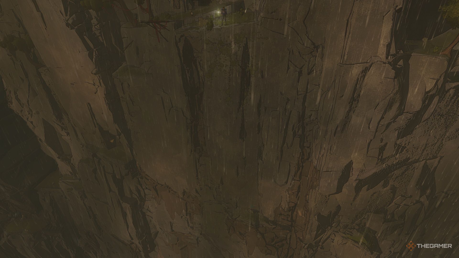 Окей, значит, я пришёл в эту область с огромным колодцем, и, видимо, мне нужно спуститься по верёвке на самый низ. Похоже, выбора нет!