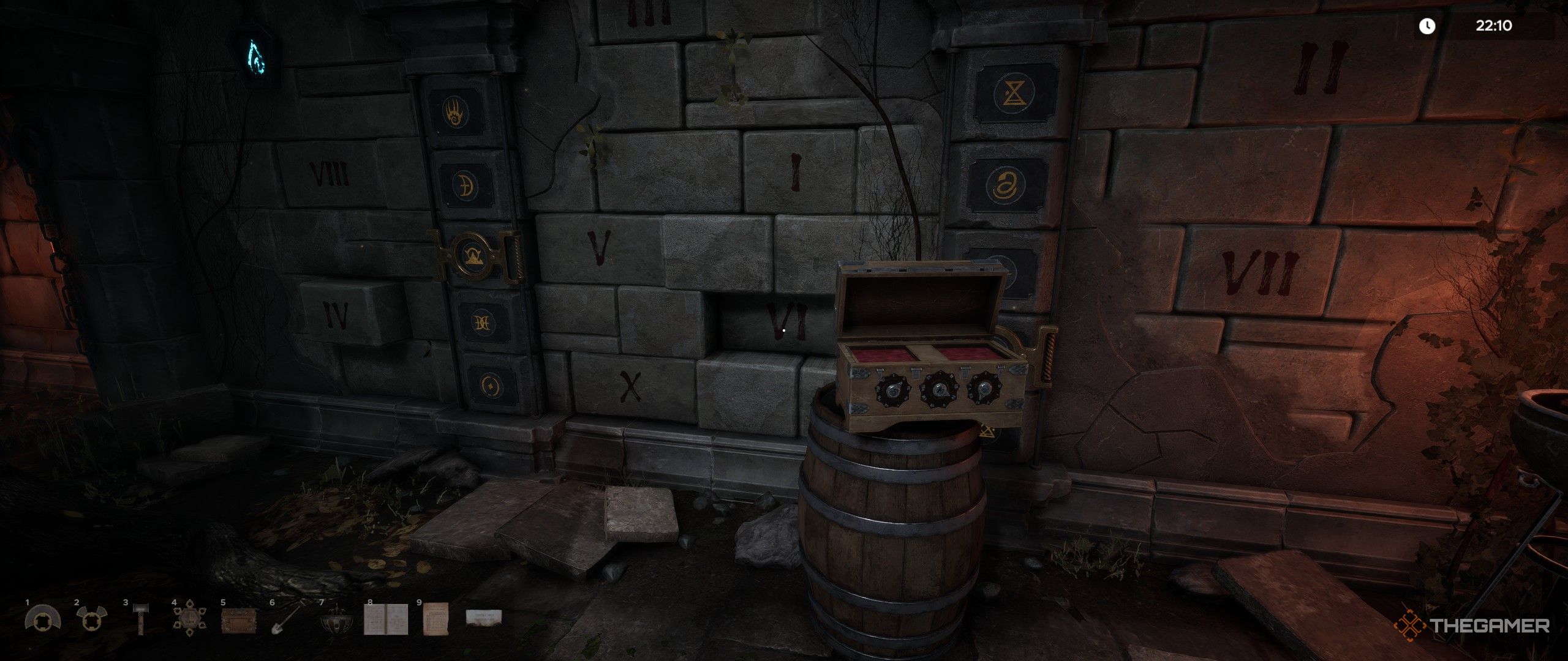 Чтобы открыть сундук, введите последовательность II, IV, VI. Внутри вы найдете два Механических Ключа, которые вам понадобятся для следующей головоломки.