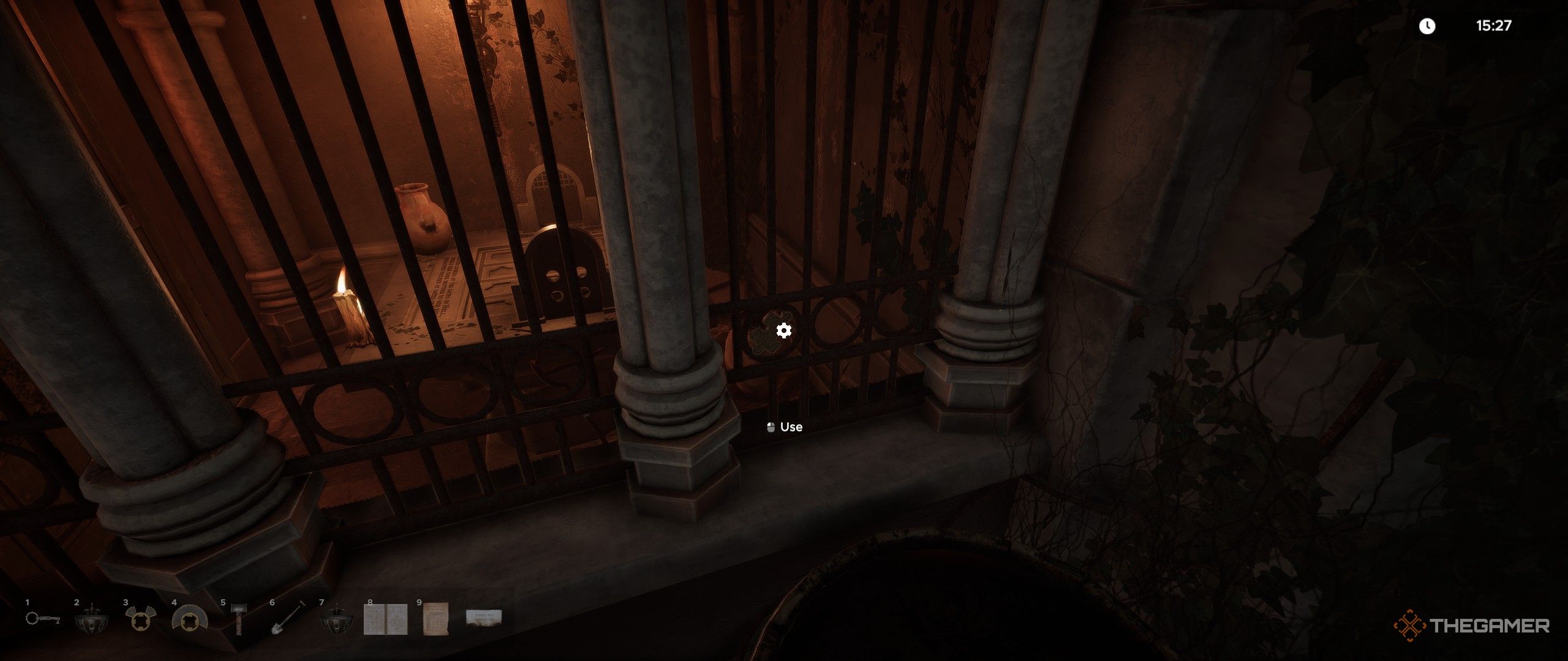 Сдвиньте круглые окна на панелях, чтобы открыть светящиеся символы, которые призовут духа, говорящего на латыни, и который будет задавать вам вопросы. Если вам нужна помощь в понимании духа, используйте книгу, которую вы нашли в сумке у фонтана.