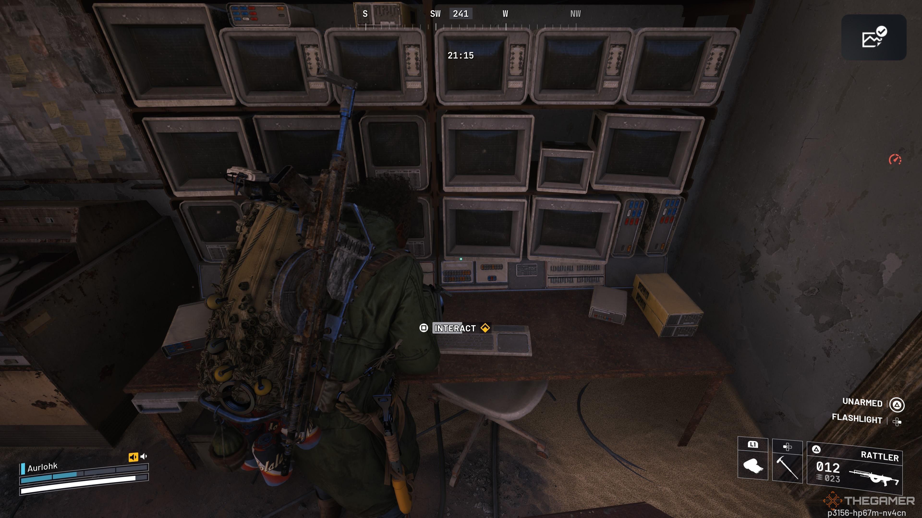 Вы можете спуститься по лестнице или воспользоваться зиплайном, чтобы попасть на этаж прямо под крышей. Как только вы туда доберетесь, войдите в квартиру, и задание продвинется вперед. Внутри зайдите в комнату сразу справа от вас, затем поверните за угол. Вы окажетесь в комнате, заполненной оборудованием, мониторами и столом с клавиатурой.