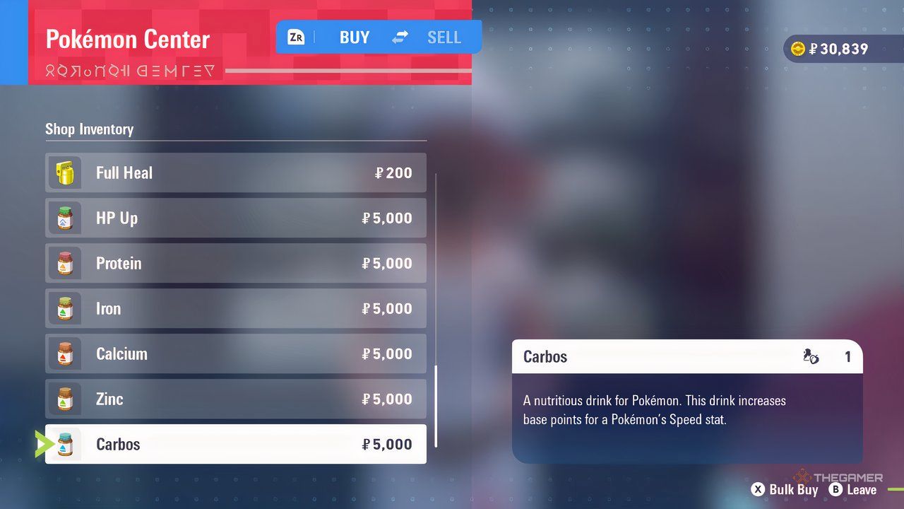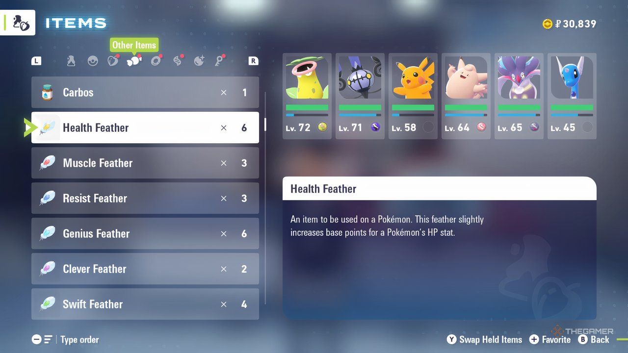 Чтобы ускорить прокачку, вы можете дать своему Покемону Предмет для тренировок во время сражений. Эти удерживаемые предметы увеличивают Значения усилий (EV), которые ваш Покемон получает, когда вы побеждаете или ловите других Покемонов. Для каждой характеристики существует отдельный Предмет для тренировок, и вы можете получить их, выполняя побочные задания или покупая у Quasartico Inc. после завершения основной истории.