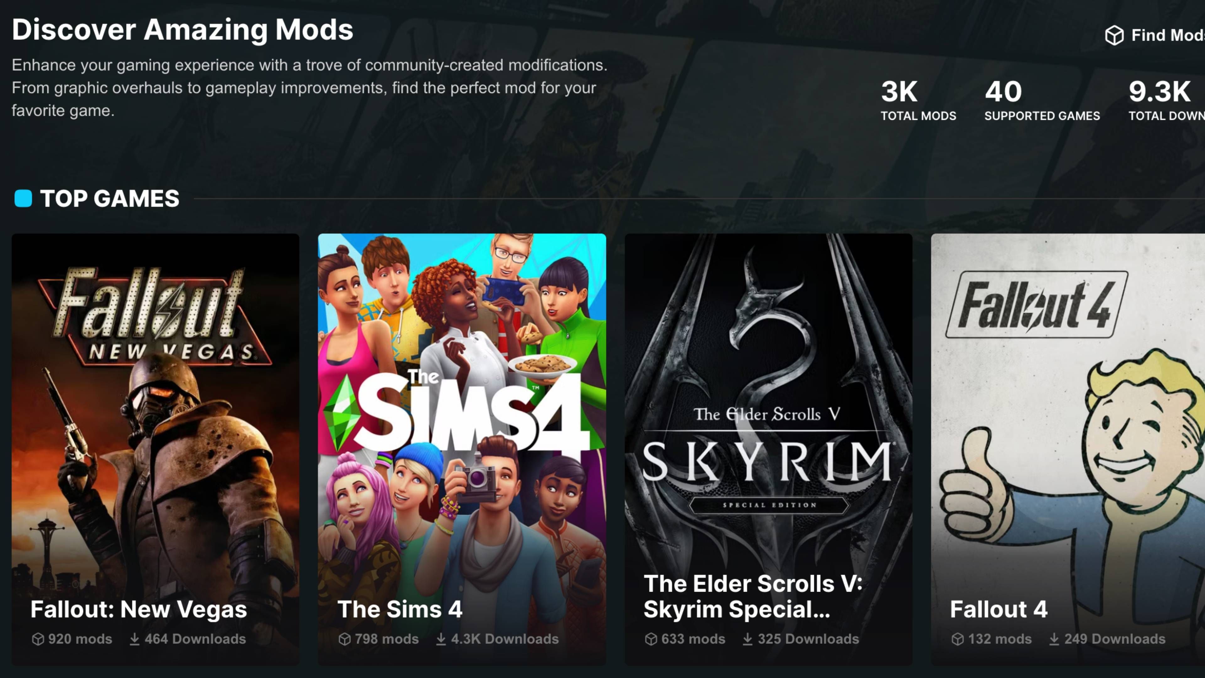 GGMods запускается 13 апреля 2026 года с огромной библиотекой модов, уже доступных для популярных игр. Вы найдете около 900 модов для Fallout: New Vegas и The Sims 4, более 600 для Skyrim, и множество вариантов для Starfield, Fallout 4, Stardew Valley и других любимых игр.