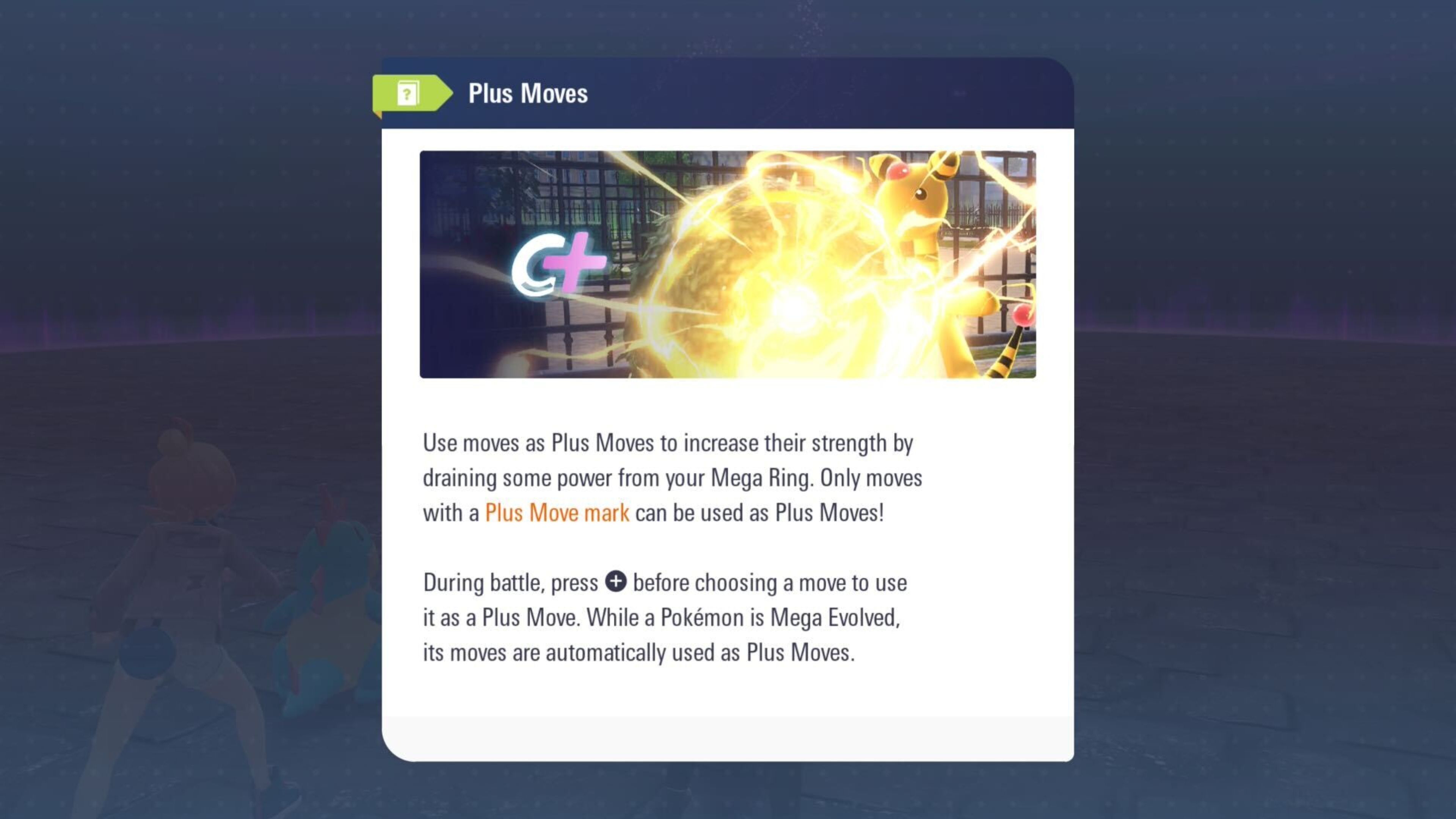 Существует заблуждение, что вам нужно посмотреть обучающее видео перед использованием Plus Moves. Это не так! Вы можете использовать их сразу после получения Mega Ring, что происходит задолго до сражения с Slowbro.