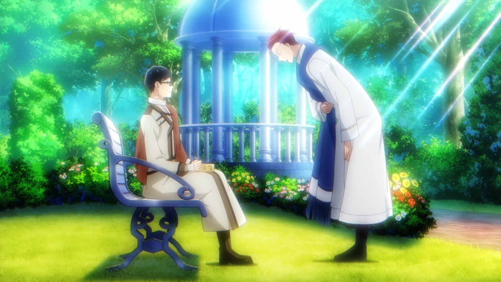Аниме ‘Isekai Office Worker’ – популярный новый сериал, сочетающий в себе приключения и BL-жанр. В центре сюжета Сэйитиро, который неожиданно переносится в другой мир. В Эпизоде 8 Сэйитиро и Селио посетили церковь для инспекции.