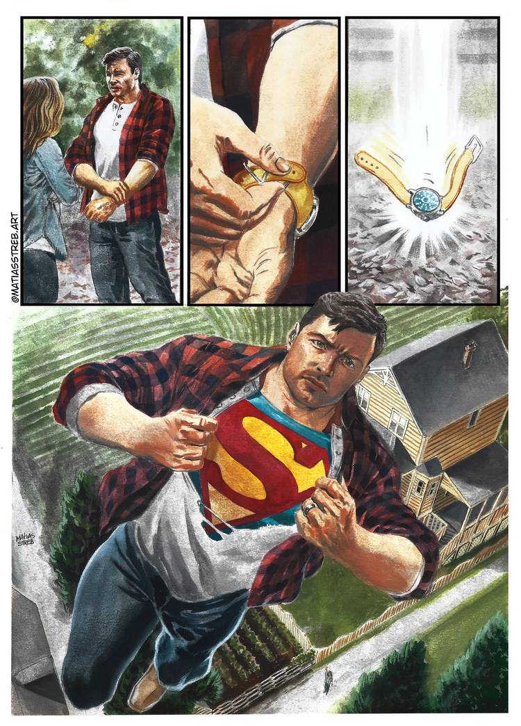Прочитать отчет 10-KХудожник Матиас Штреб создал произведение искусства, предлагающее иное толкование мимолетного появления Супермена во вселенной Стрелы. На нем изображено, как Супермен извлекает часы из своего костюма, раскрывая, что именно Синий Криптонит ослабил его. На арте изображено, как Кларк Кент разрывает рубашку, обнажая свой культовый костюм, а затем улетает, чтобы, предположительно, помочь героям вселенной Стрелы во время кризиса мультивселенной.