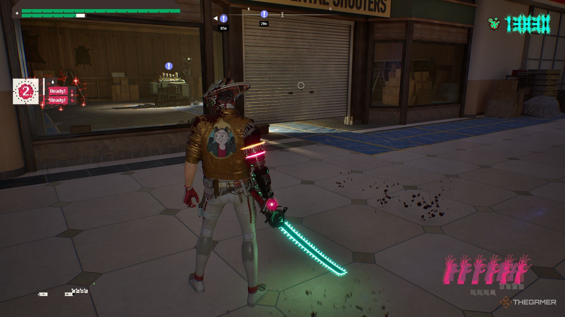 Вы найдёте второй генератор наверху, на втором этаже. Чтобы добраться до него, вам нужно открыть ворота в магазин, в котором он находится, многократно нажимая кнопку взаимодействия. Будьте готовы к вашему первому врагу, Флэбу – он уязвим в затылке, поэтому цельтесь туда, чтобы нанести большой урон. Также внутри находятся стреляющие Роттеры; убейте их, прежде чем сосредоточиться на генераторе.