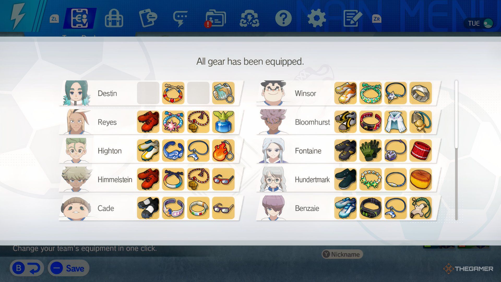 Выполнение необязательных заданий и поиск спрятанных футбольных мячей даст вам достаточно жетонов, чтобы улучшить ваше снаряжение. Вам не нужно улучшать каждого игрока в вашей команде, чтобы продвинуться по сюжету, что является хорошей новостью!