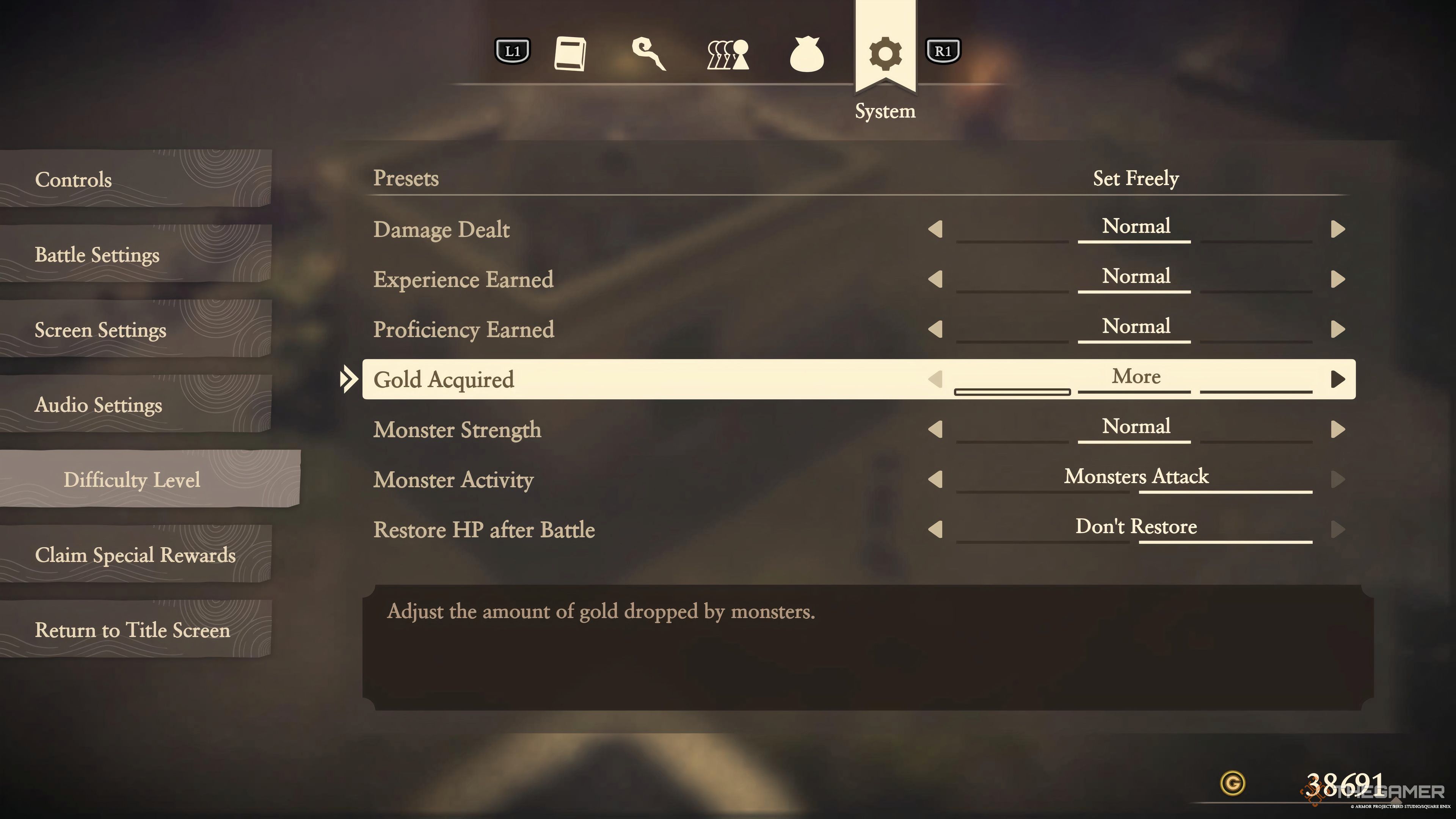 Некоторые игроки могут предпочесть традиционный способ получения Золота, но если вы хотите избежать большого количества повторяющегося геймплея или просто хотите зарабатывать Золото быстрее, вы можете изменить настройку, чтобы получать больше Золота за каждую битву.