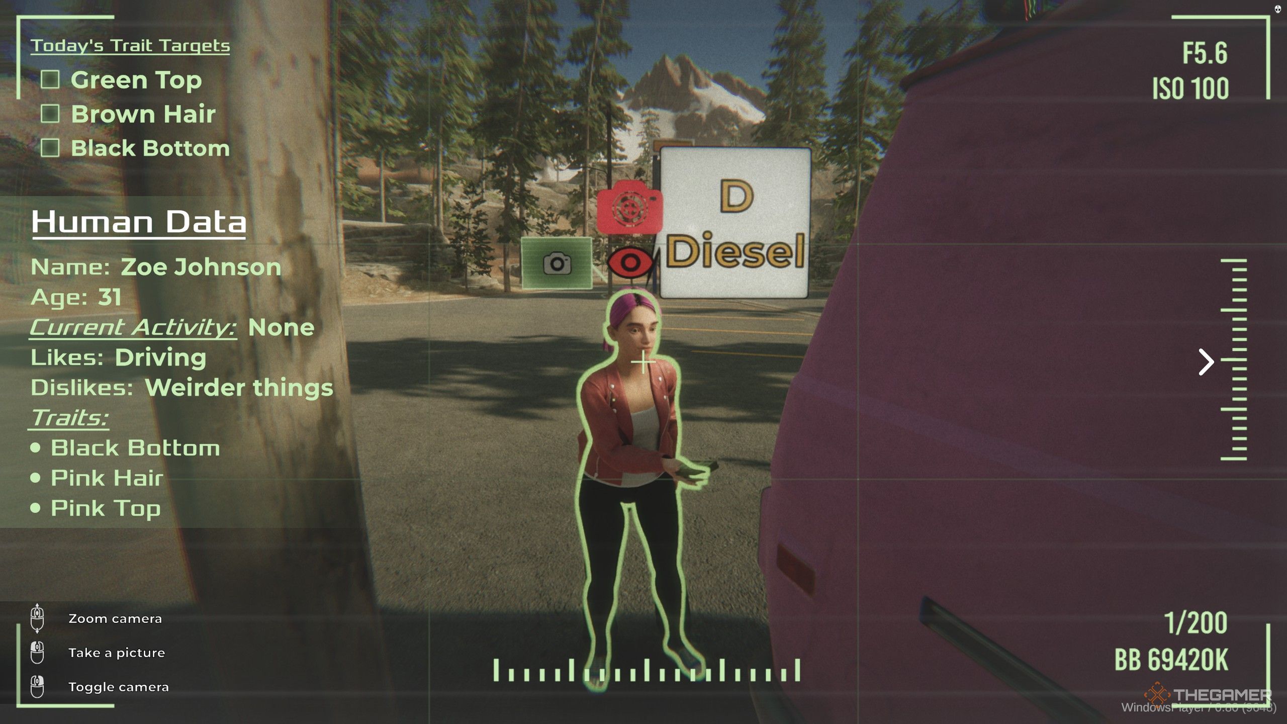 Сделать снимок просто: просто направьте камеру на человека и сделайте снимок. Камера автоматически фокусируется на нём, пока его детали видны. Вы зарабатываете очки исследований за каждую зафиксированную характеристику, но получить новые характеристики можно только на следующий день, что ограничивает количество исследований, которые вы можете получить от фотографий каждый день.