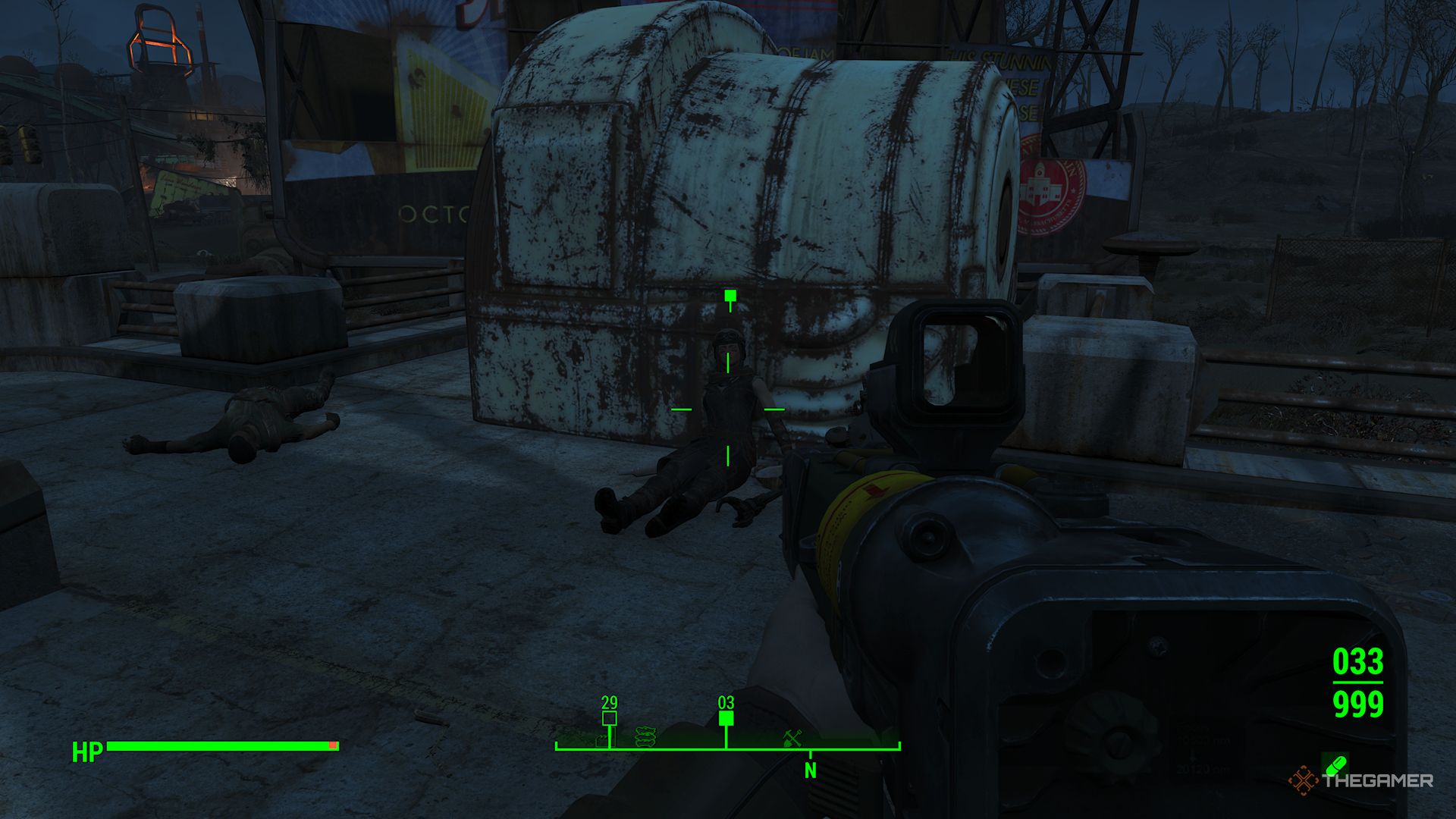 После расправы с врагами найдите тело пилота. Оно находится на крыше парковки, рядом с вертолётом. У него есть записка – под названием Sparrow’s Note – которую вам нужно прочитать. Обыщите тело в поисках записки, затем откройте свой Pip-Boy, чтобы просмотреть её.