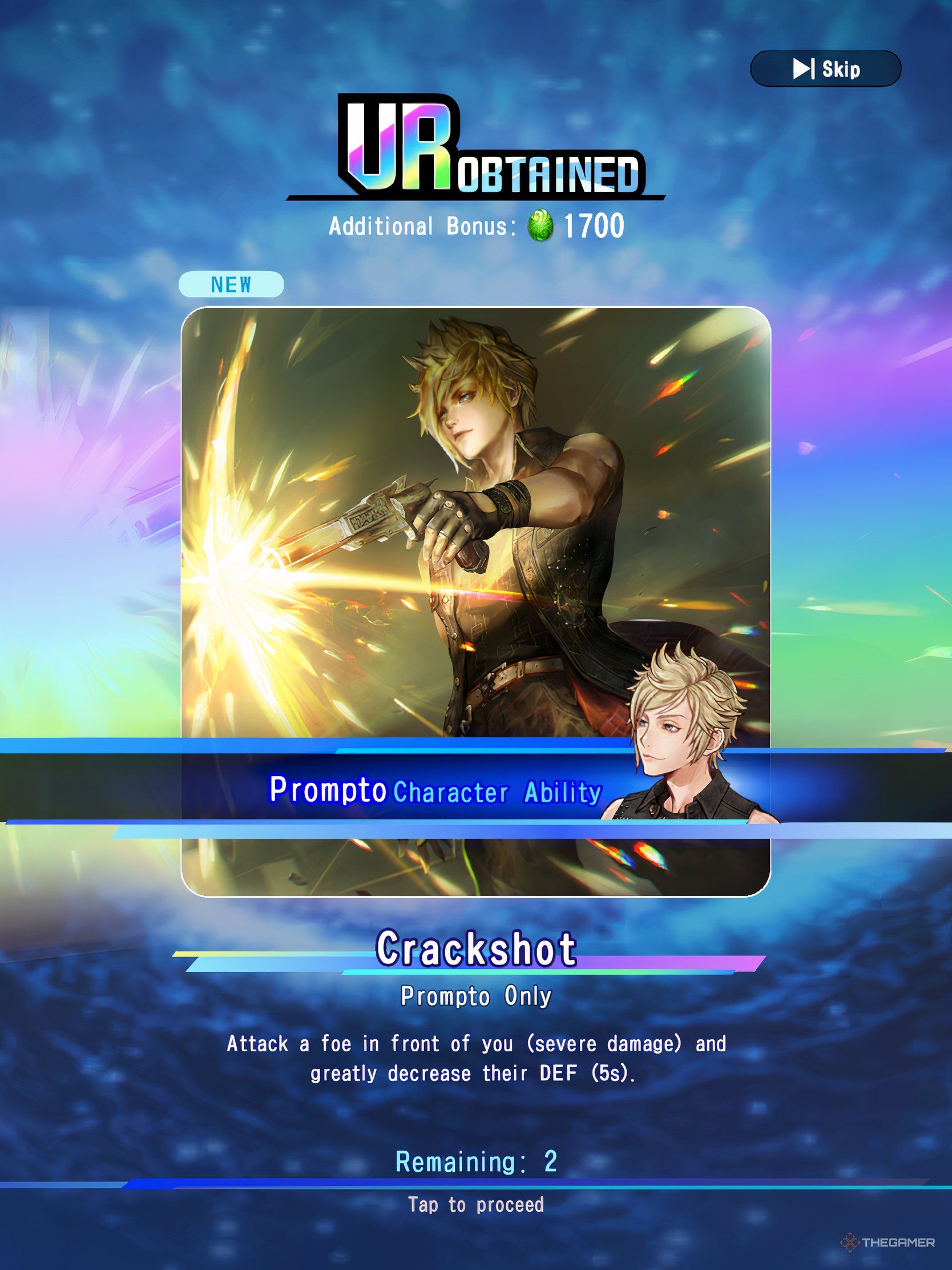 Промпто – популярный персонаж из Final Fantasy 15, известный как опытный стрелок и энтузиаст-фотограф. Он привносит те же сильные стороны в своё появление в современном Токио. При эффективной сборке он может наносить значительный урон на расстоянии и является ценным активом для любой команды.