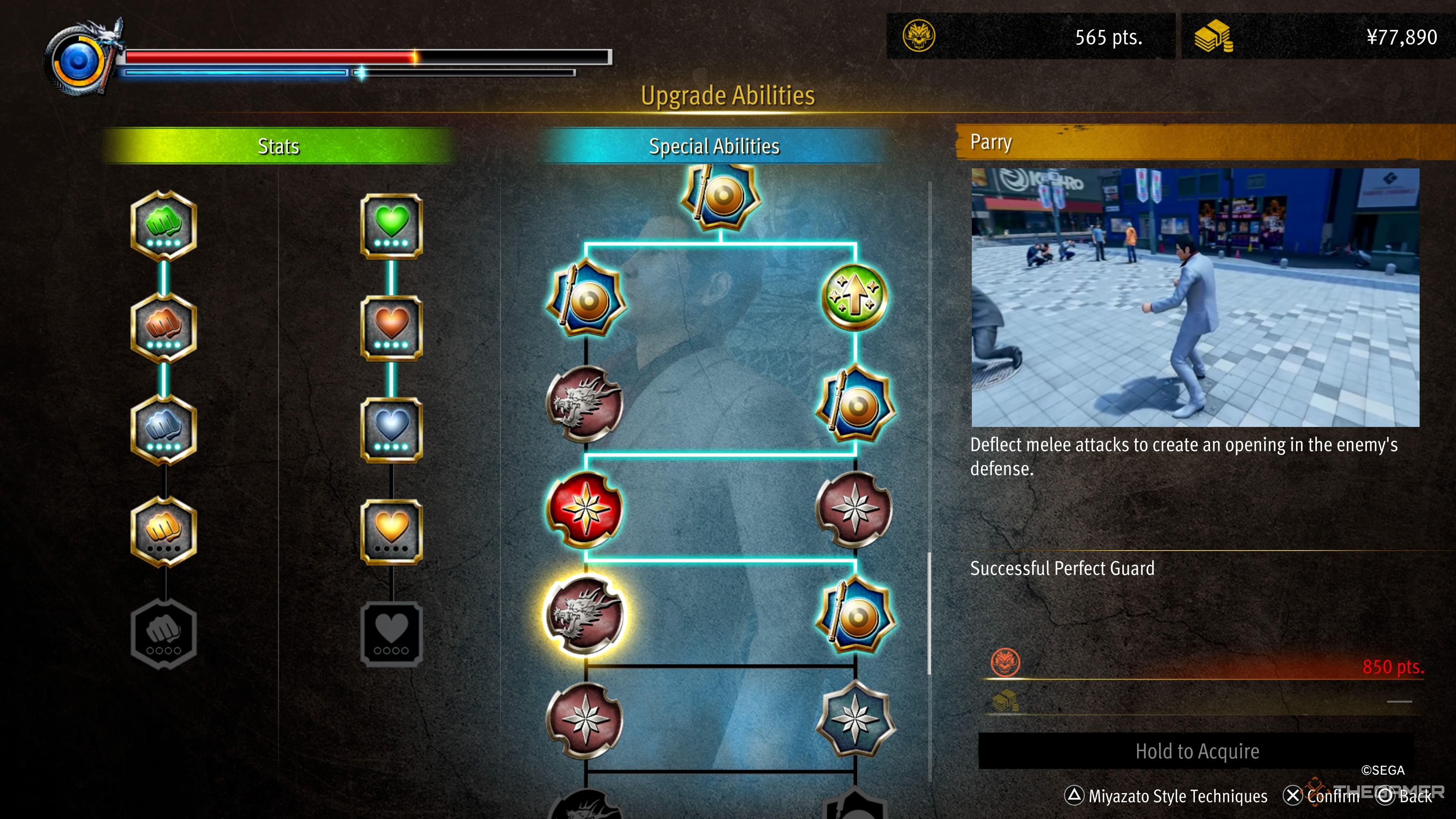 Улучшение характеристик вашего персонажа стоит иен, а разблокировать и улучшать особые способности вашего Стиля вы сможете с помощью Очков Тренировки, получаемых в боях, особенно при использовании комбо и блокировании.