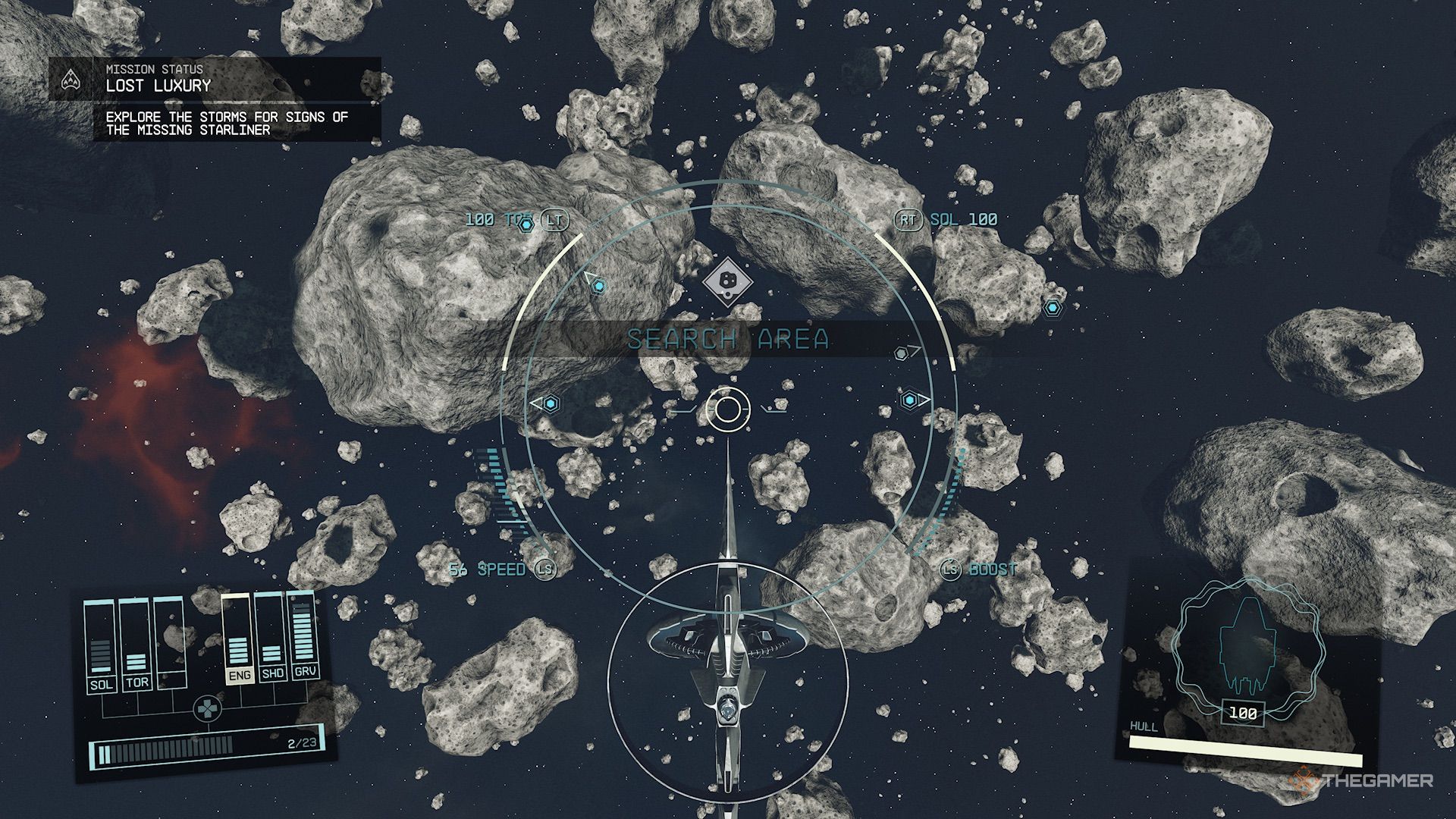 Исследуйте штормы, указанные синими маркерами заданий на вашем экране. Когда вы обнаружите пропавший звездолет, подойдите к нему и состыкуйтесь с ним. Оказавшись на борту, вы начнете первую сюжетную линию, добавленную с этим DLC, посвященную флоту Теран.