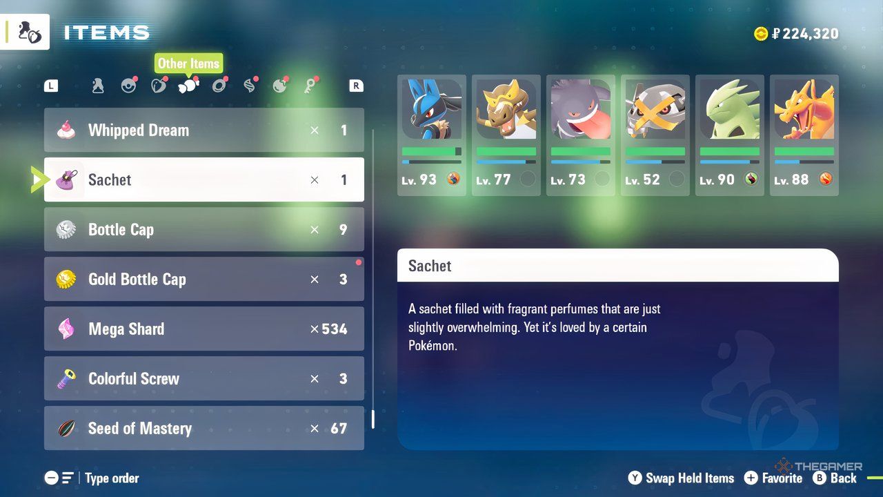 Обмен Spritzee с Sachet для его эволюции приведет к потреблению предмета.