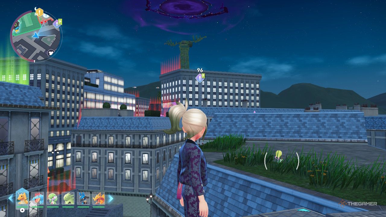 Чтобы добраться до крыши, используя Hyperspace Hole от Staraptor, сначала быстро переместитесь в Cafe Soleil. Затем направляйтесь на север по South Boulevard и поверните направо на улицу, расположенную к югу от Wild Zone 10.