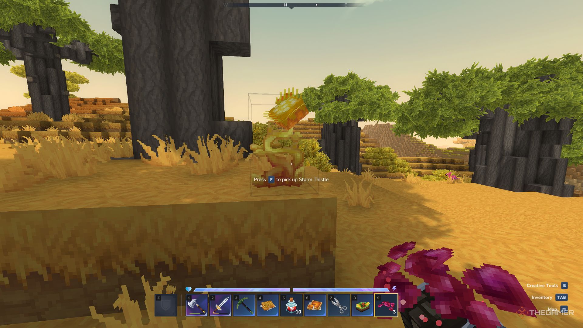 At the edge of the Emerald Grove and the Howling Sands Zones, you can often find Storm Thistle. |