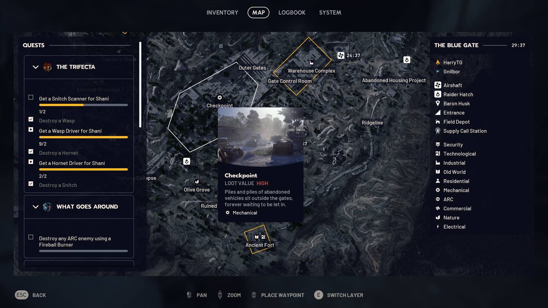 Контрольная точка на Синих Воротах — хорошее место для сбора Механических Компонентов, но будьте осторожны, там много врагов Arc, включая мощного Bastion.