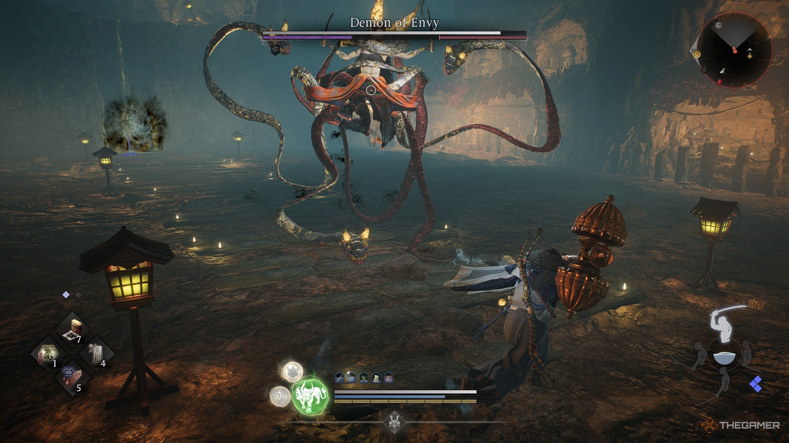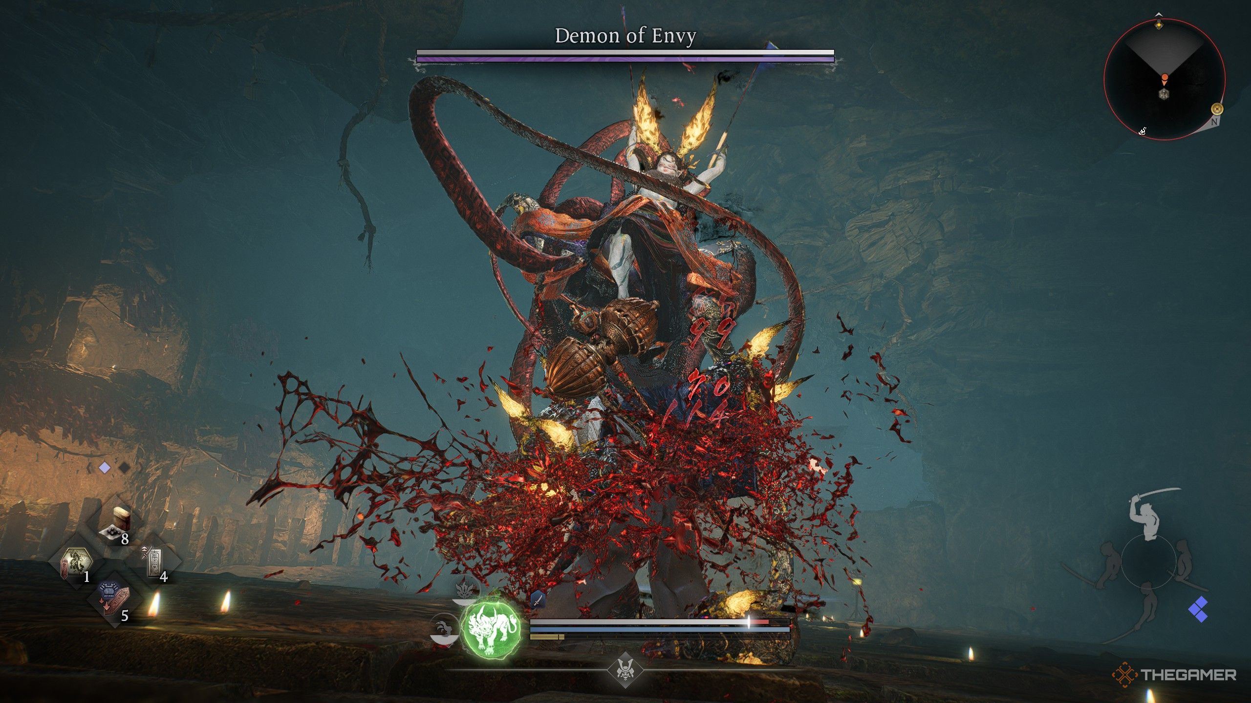 После того, как Демон Зависти покинет Тёмное Царство, она вернётся к своим обычным атакам. Постарайтесь обойти её сзади во время движения, чтобы создать безопасные возможности для атаки. Поскольку она быстро восстанавливается, избегайте длинных комбо-атак, если вы не можете повалить её для критического удара.