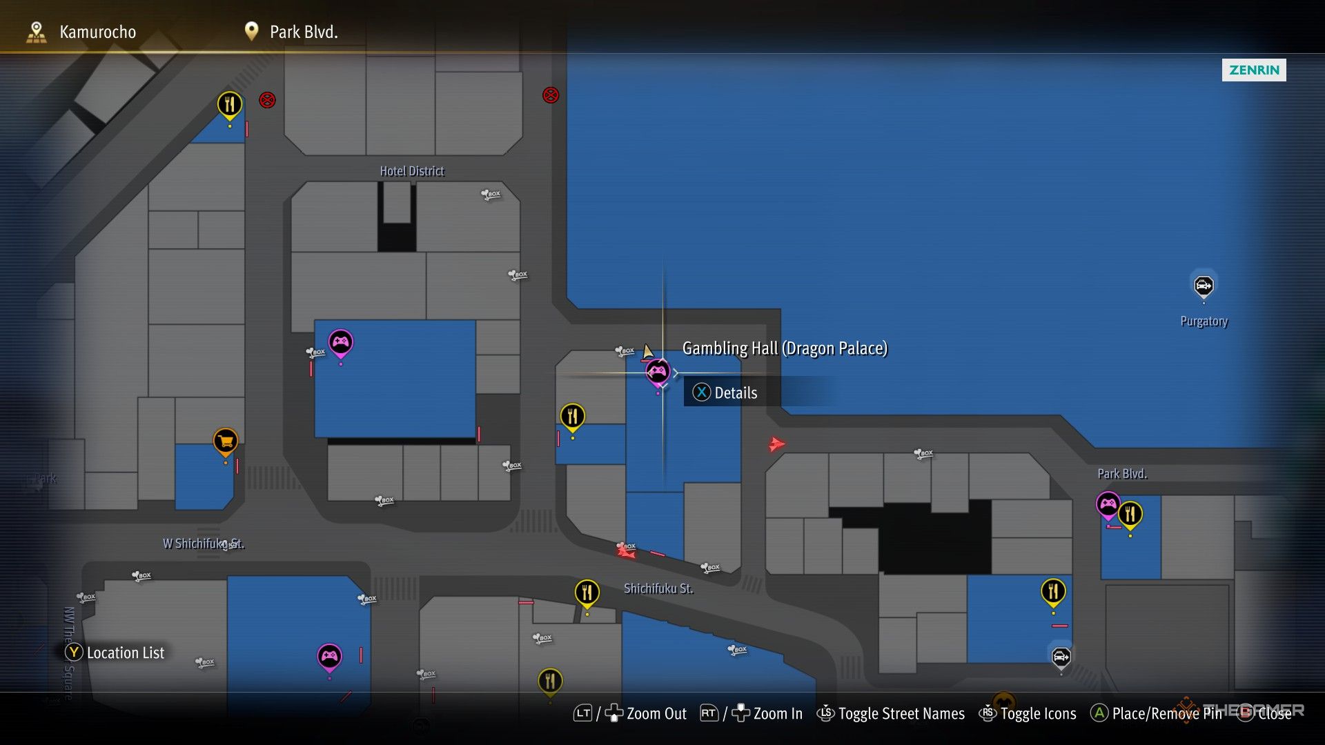 Игорный зал (Драконий дворец) Это находится сразу к югу от Purgatory, в той же группе зданий, где находится Ikinari Steak.