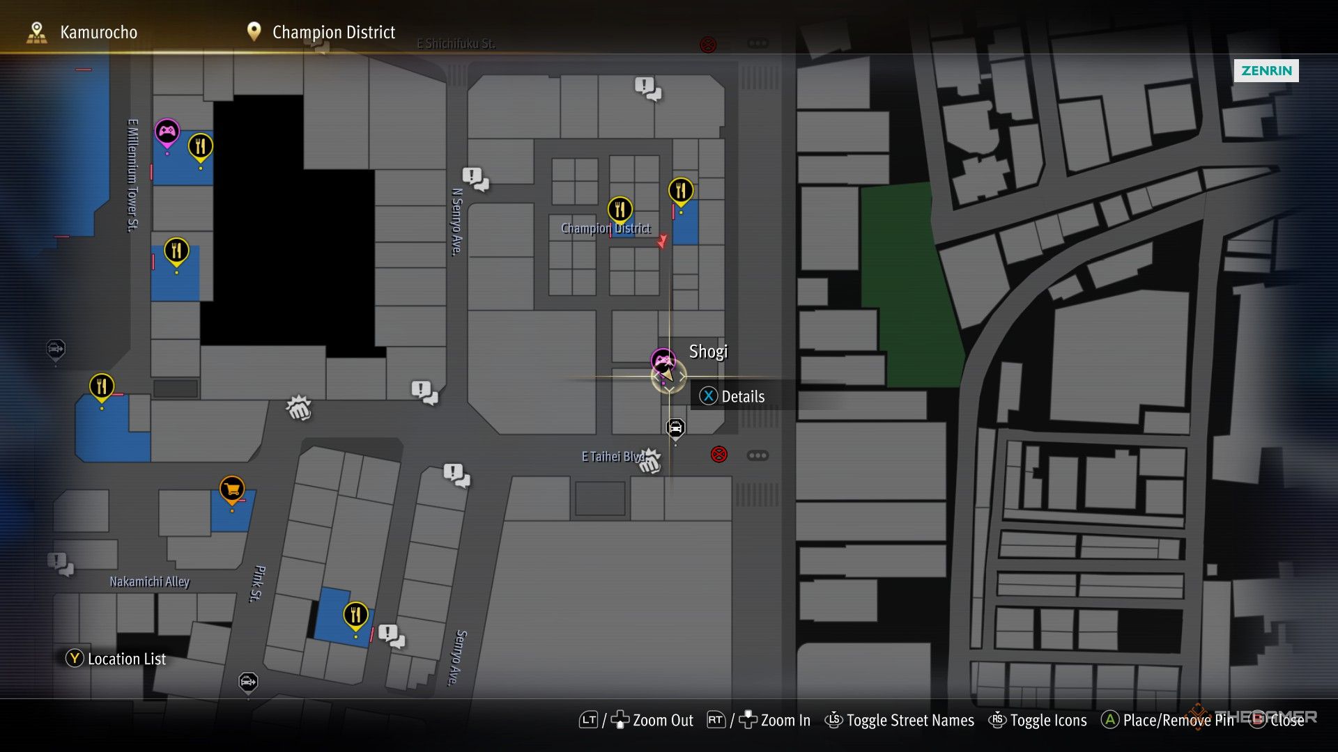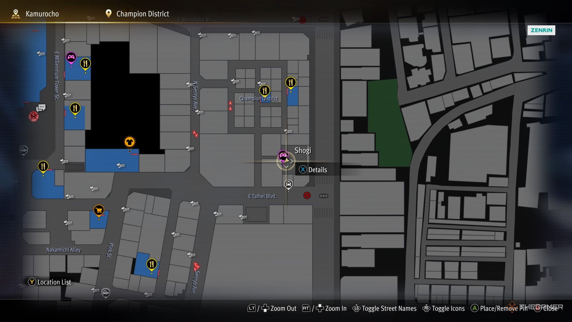 Шоги Вы можете найти игрока в Шоги к югу от Район Чемпионов на небольшой площади карты, сразу к северу от E Taihei Blvd. |