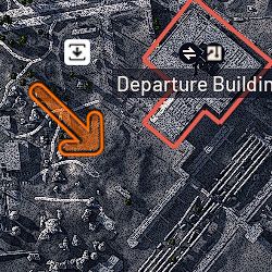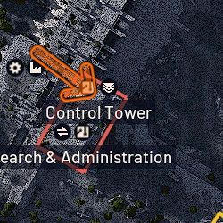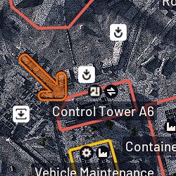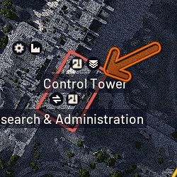 The Control Tower entrance, in the center of the map. Exercise caution, as this is a high-security area. You’ll need to take the zipline up and navigate to the elevator to use the key. |