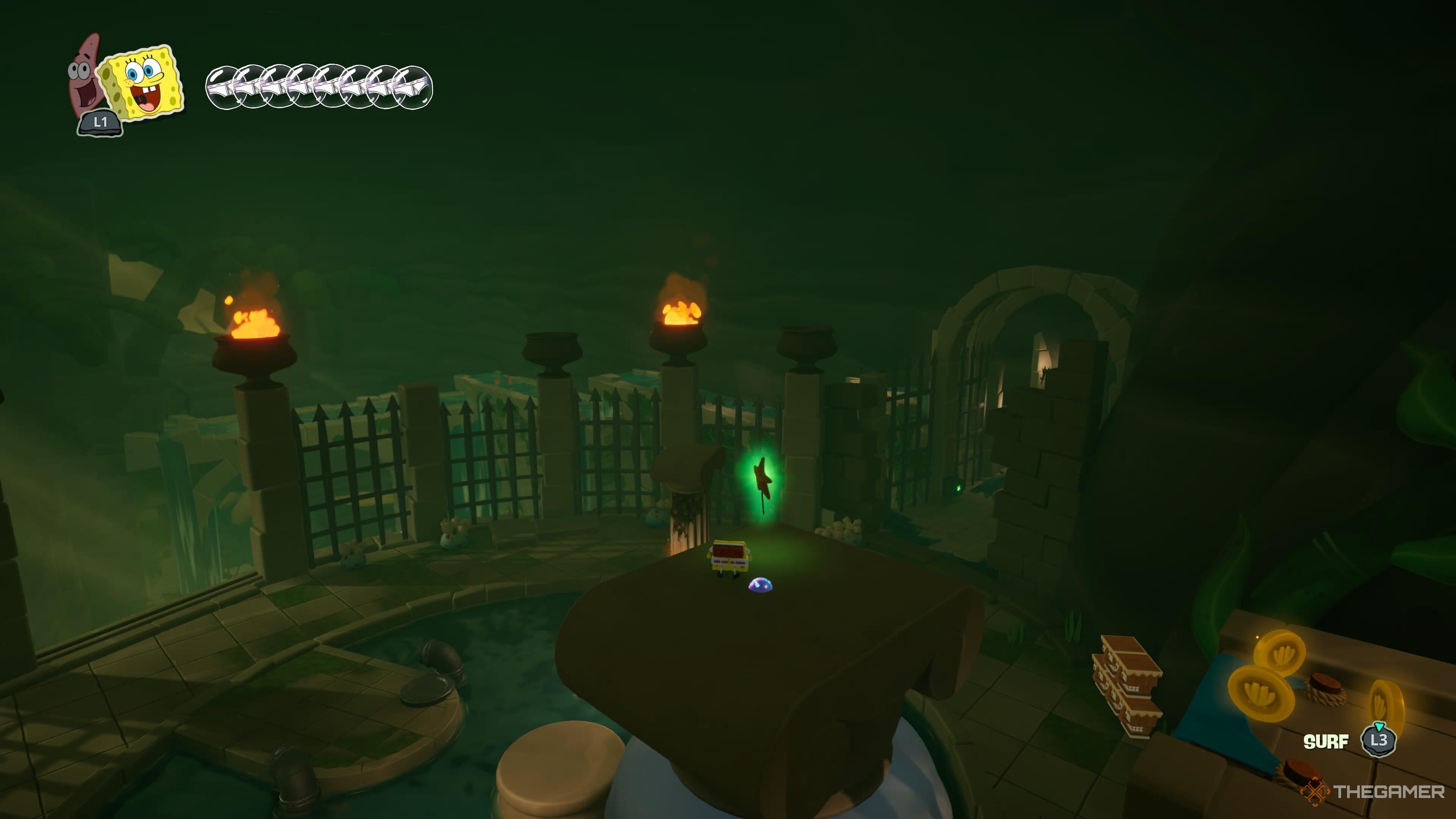 Окей, как вы и ожидали от игры про Спанч Боба, Titans of the Tide наполнена вещами для сбора и скрытыми секретами. Я даже нашел что-то, что станет настоящим возвращением в прошлое для тех, кто любил первый фильм про Спанч Боба – это действительно крутая отсылка!