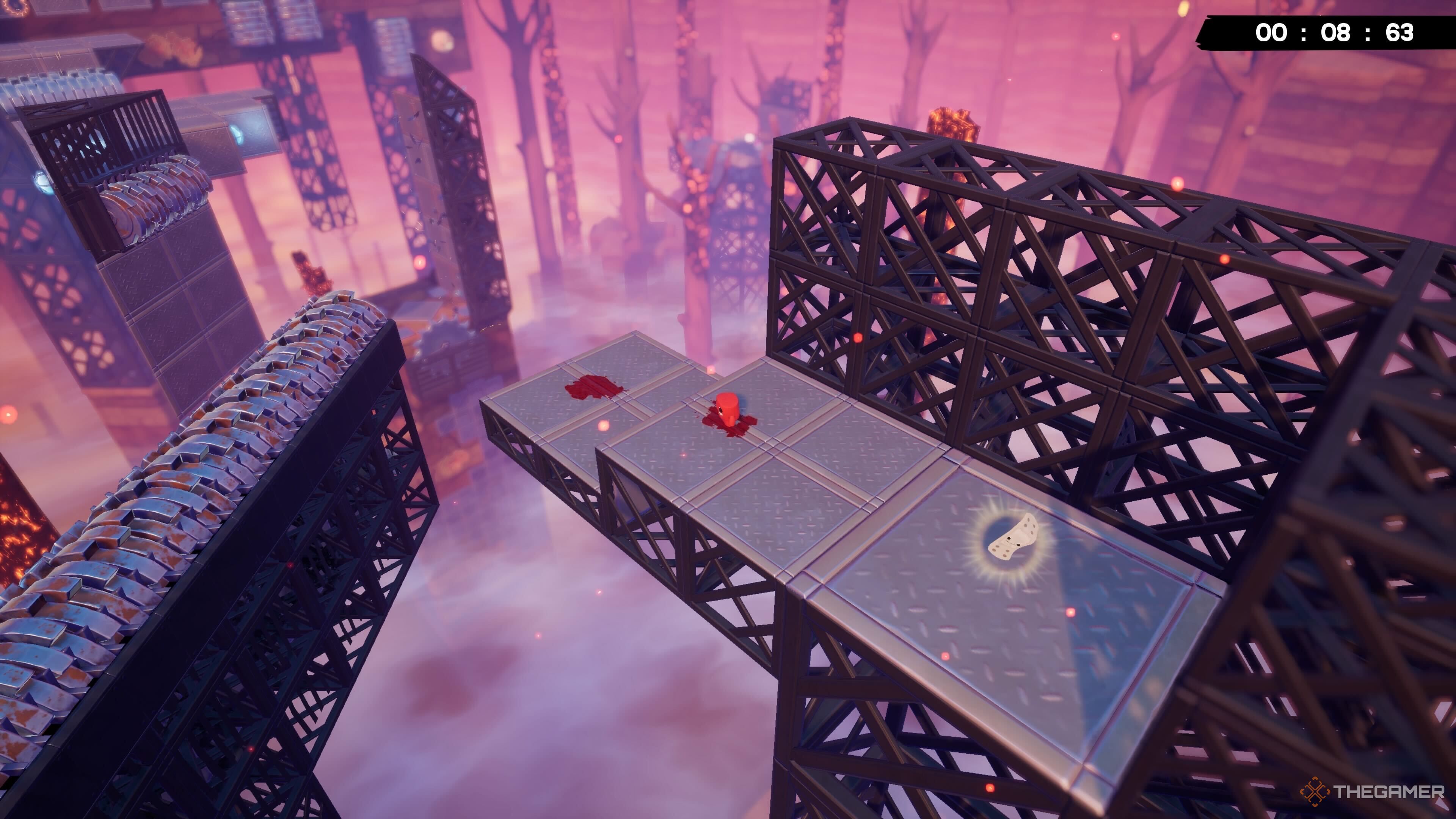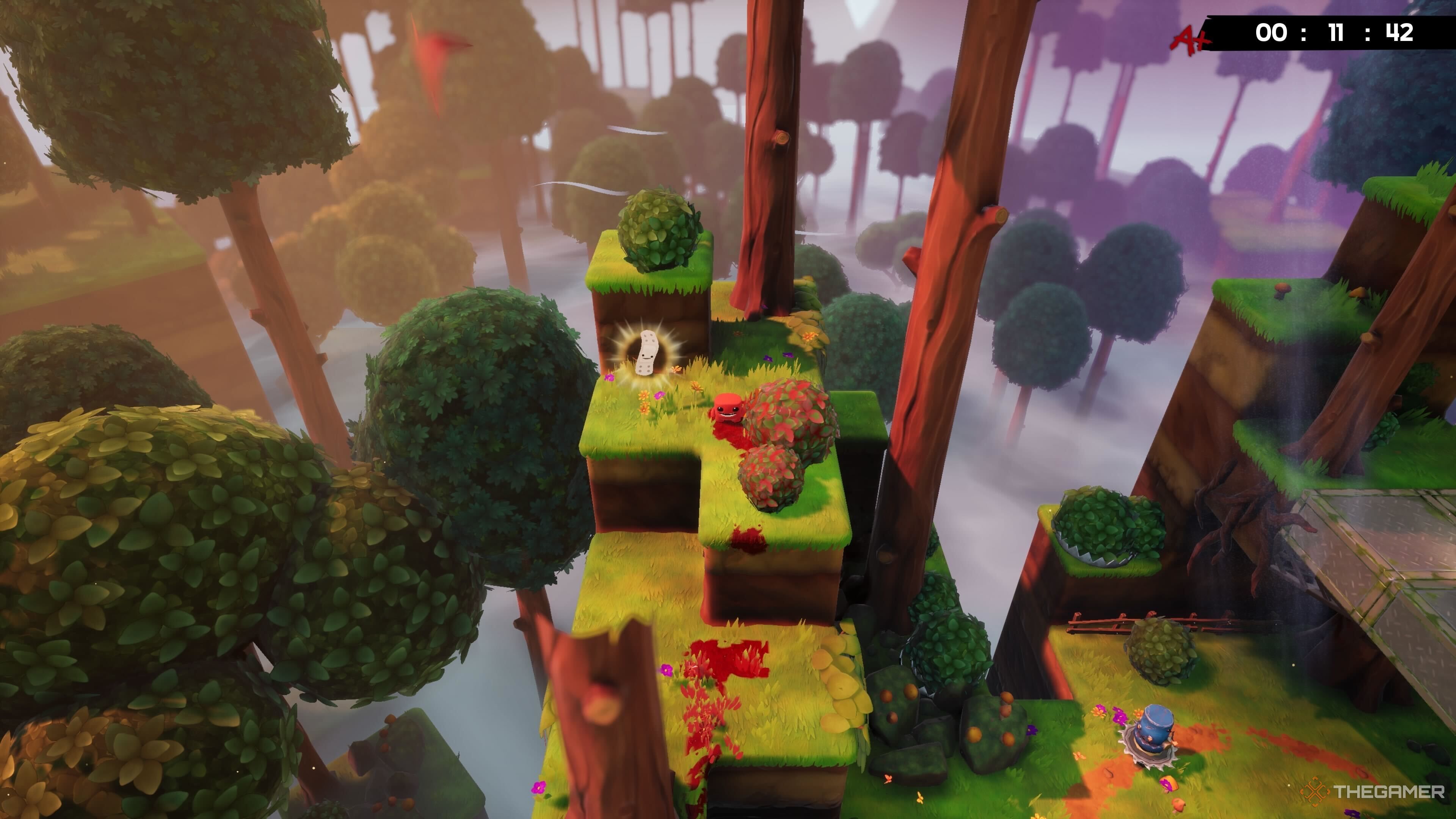Вы можете найти первую Повязку в Super Meat Boy 3D возле конца уровня, на серии платформ слева от вас.
