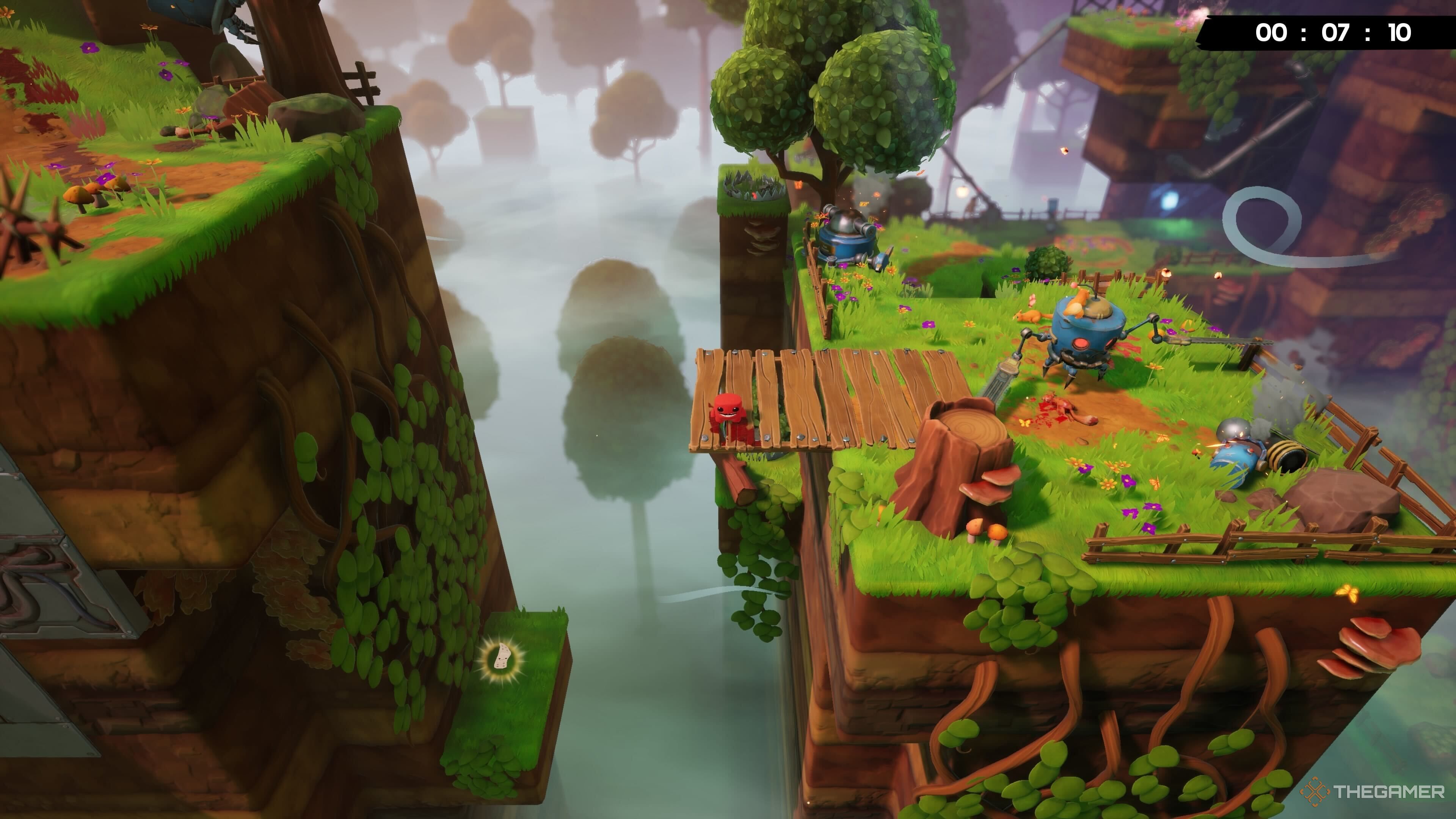 Эта повязка может быть непростой в получении! Когда вы доберетесь до правой стороны, многократно прыгайте вверх по стене, покрытой листьями, чтобы обнаружить секретный путь. Будьте осторожны с пилами, хотя!