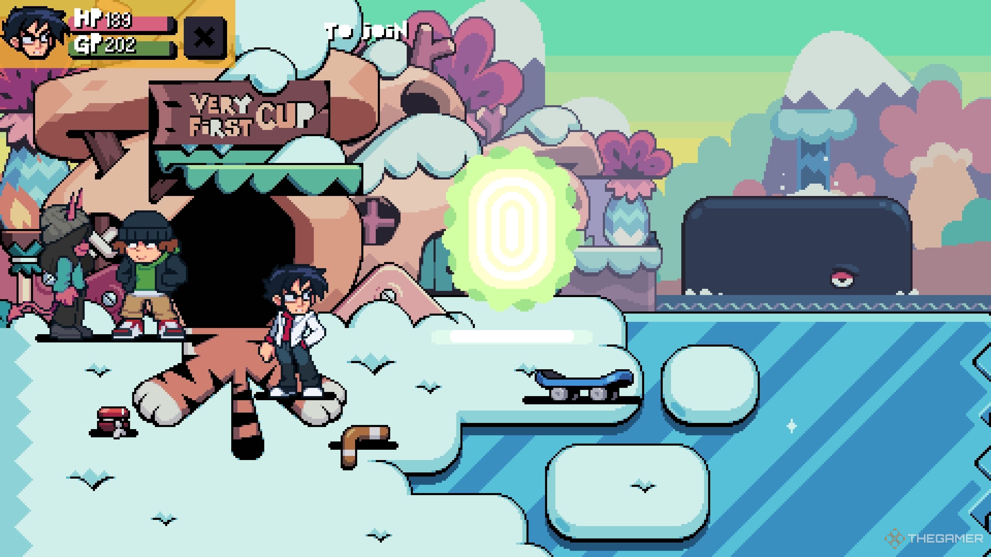 В Scott Pilgrim EX Ледниковый период — первое альтернативное измерение, которое вы исследуете, и в нём есть магазин под названием First Cup. Подобно магазинам Ice Guys, здесь всё вращается вокруг еды, но вам не нужно будет сначала его разблокировать.