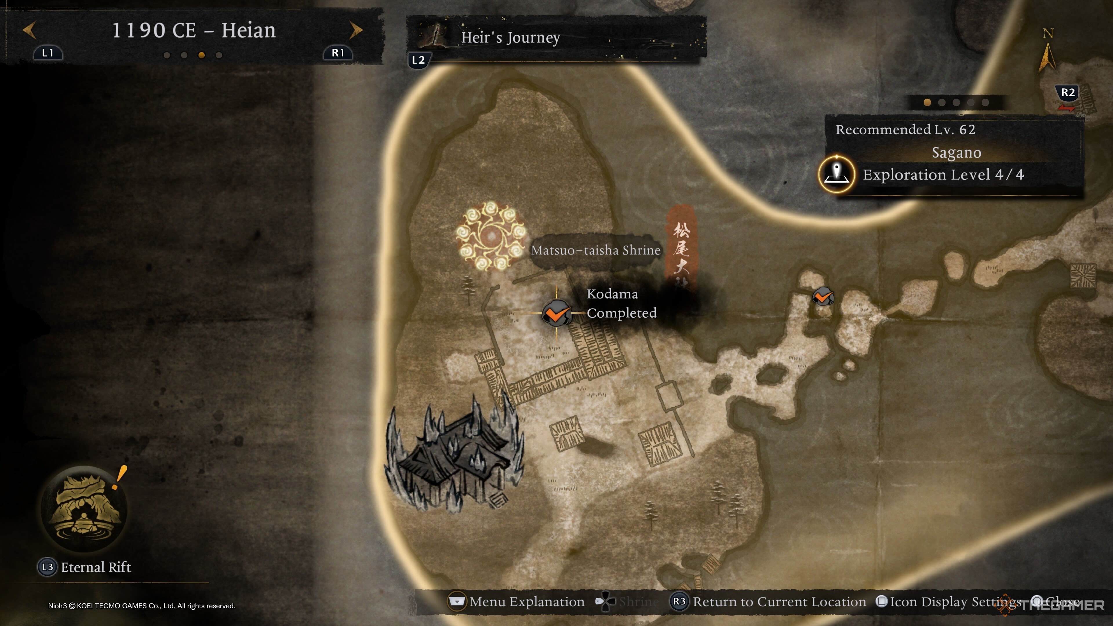 Второй Кодама Святилища (и четвёртый для Сагано в целом) находится в самом Святилище, снаружи и справа от области, недалеко от места, где вы сражаетесь с боссом этой области. Похоже, что этот Кодама заблокирован сюжетной миссией, поэтому вам нужно будет переиграть ‘Свиток битвы Черного Перьевого Убежища’, если вы пропустите его с первого раза. |