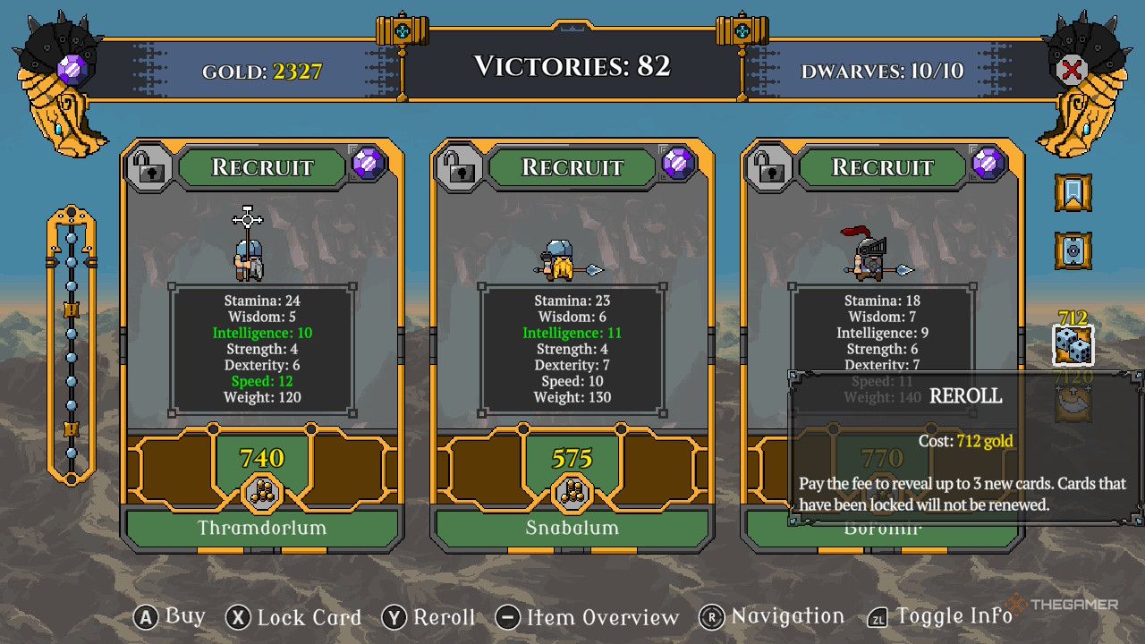 Вы можете нанимать новых гномов в свой клан в любое время. Это называется вербовкой, и она стоит определенную сумму, которую вы можете увидеть перед наймом каждого гнома.