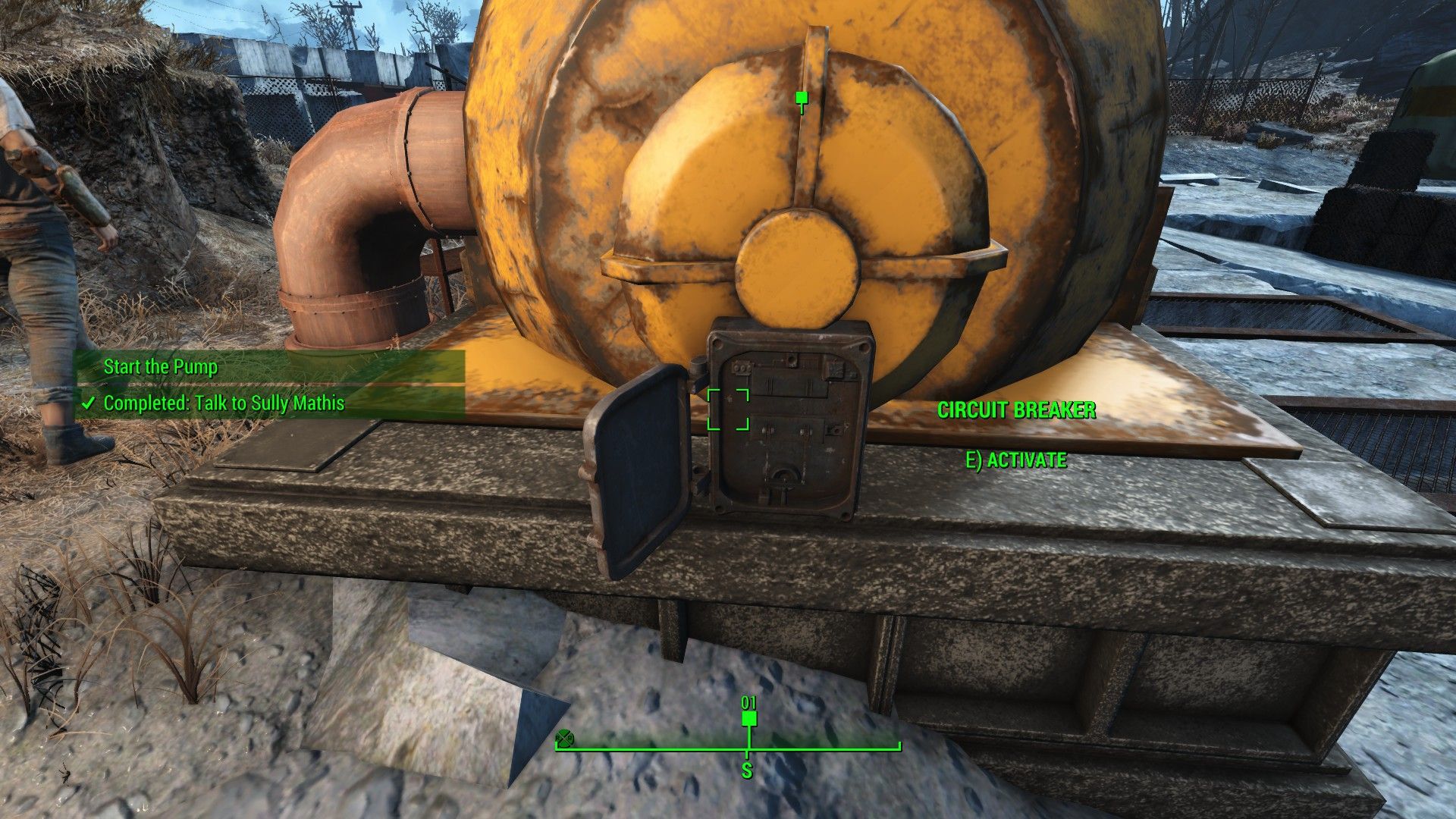 После того, как вы почините все трубы, вернитесь к Салли Мэтису в его лагерь. Затем активируйте автоматический выключатель рядом с большим, жёлтым насосом. Это создаст много шума и разбудит некоторых Mirelurks, которые немедленно нападут на вас и Салли. Будьте готовы с мощным оружием или сосредоточьте свои атаки на уязвимых местах Mirelurks.