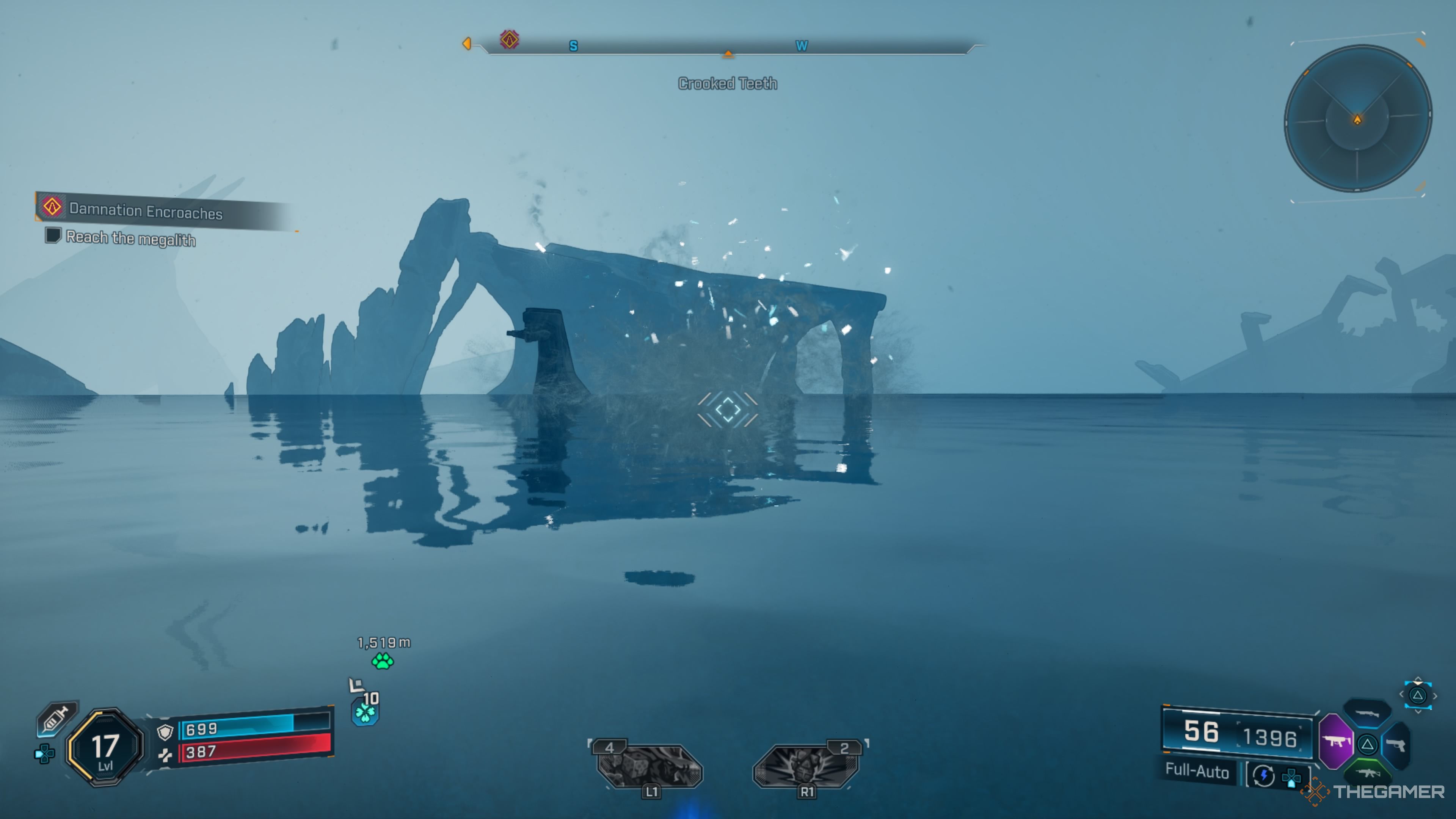 Внутри Speakeasy поищите Марину за одним из столиков, расположенных за барной стойкой, и поговорите с ней. После этого быстро переместитесь обратно к Whispering Glacier, используя гараж Элли. Затем проедьте на своем автомобиле через каньон на запад и продолжайте движение, пока не достигнете океана на краю карты.