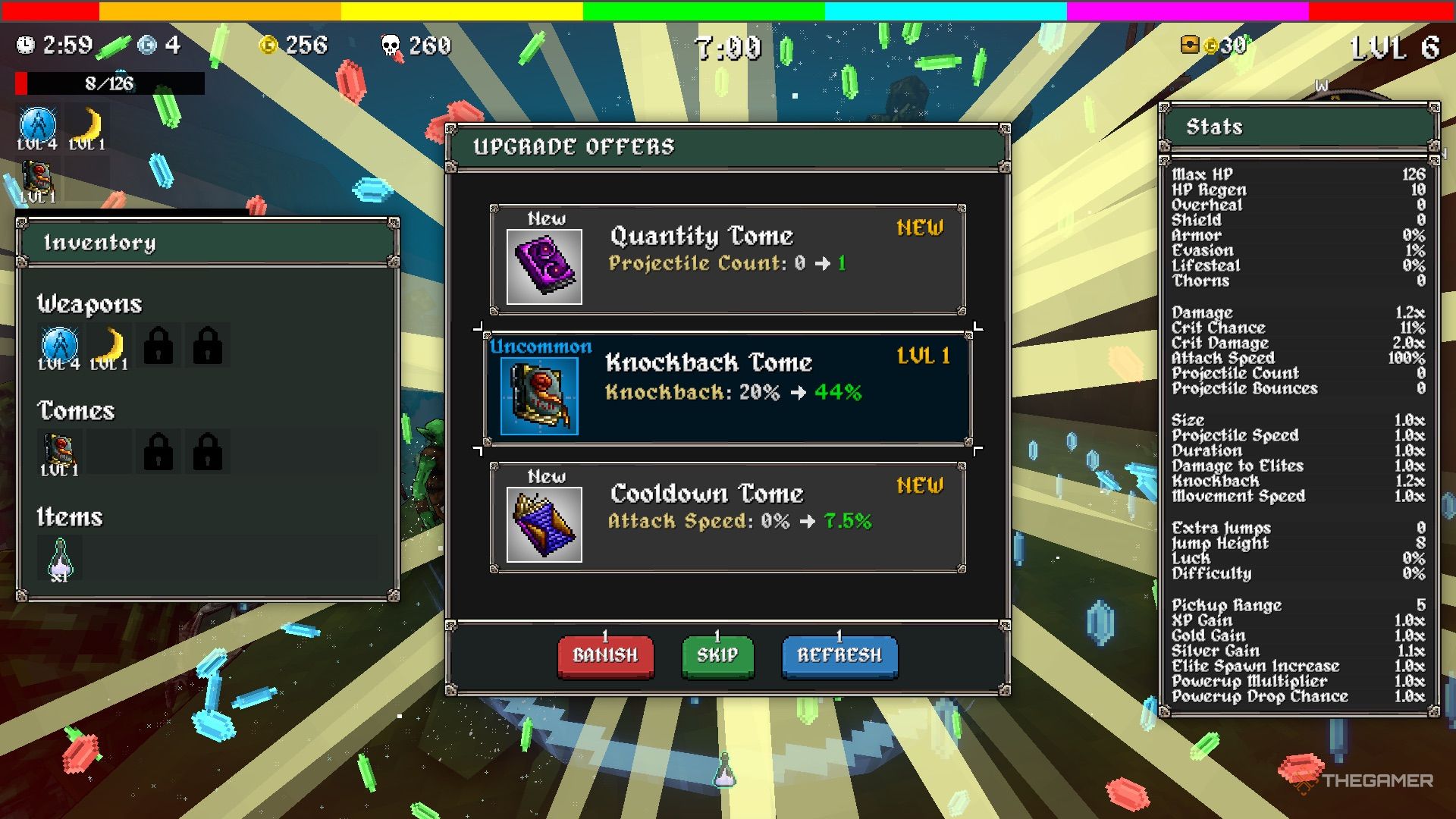 Megabonk включает в себя 23 Тома, которые вы можете открыть в ходе игры. Некоторые доступны сразу, а большинство остальных вы получите, просто играя – получая опыт, побеждая врагов и выигрывая битвы с боссами.