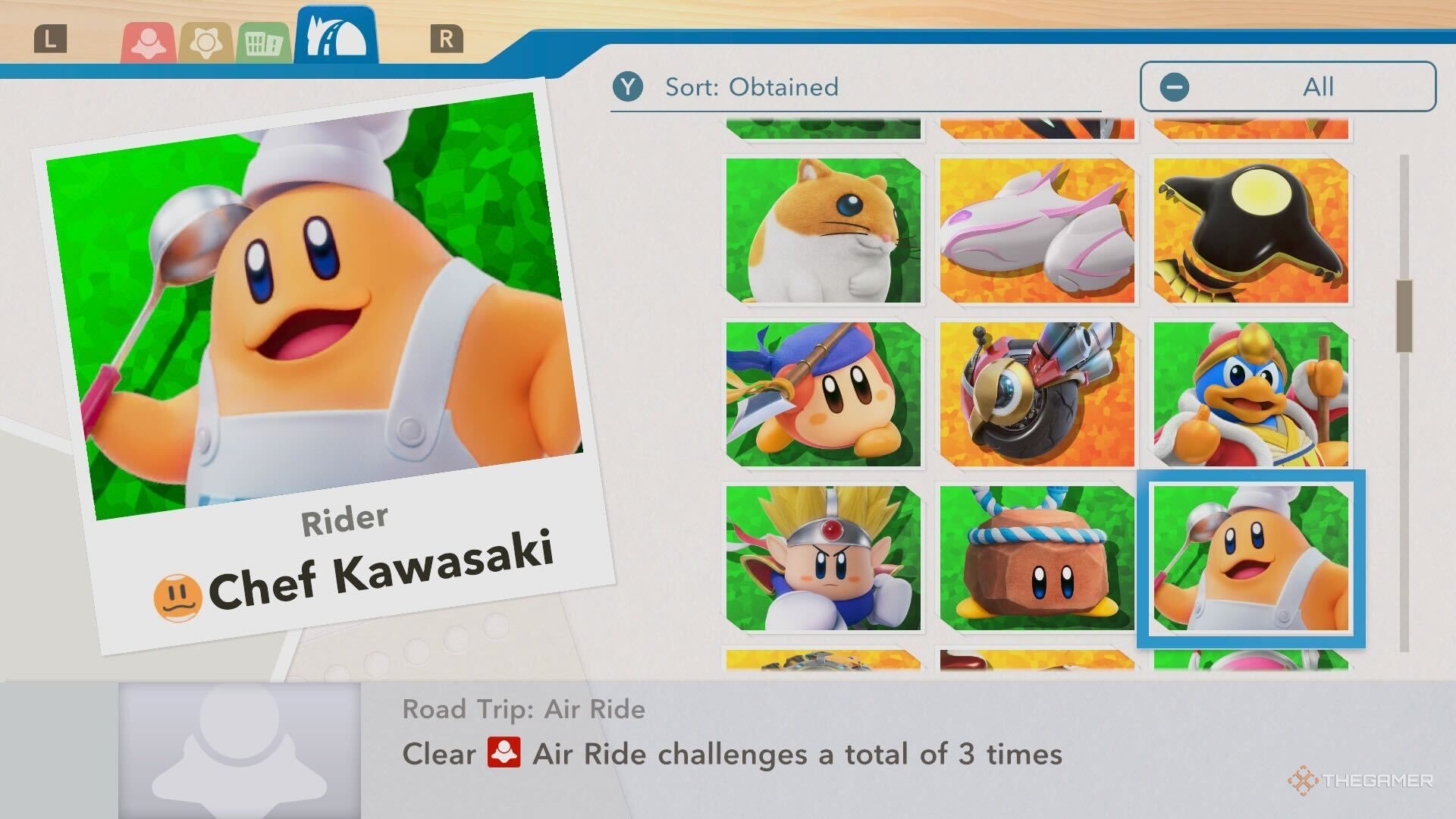 Шеф Kawasaki — популярный персонаж в Air Riders, и есть несколько способов его разблокировать. Самый простой способ — выполнить три красных испытания во время игры в режиме Road Trip. В качестве альтернативы, вы можете разблокировать его, найдя и съев онигири в конце этапа Mount Amberfalls в режиме Air Ride.