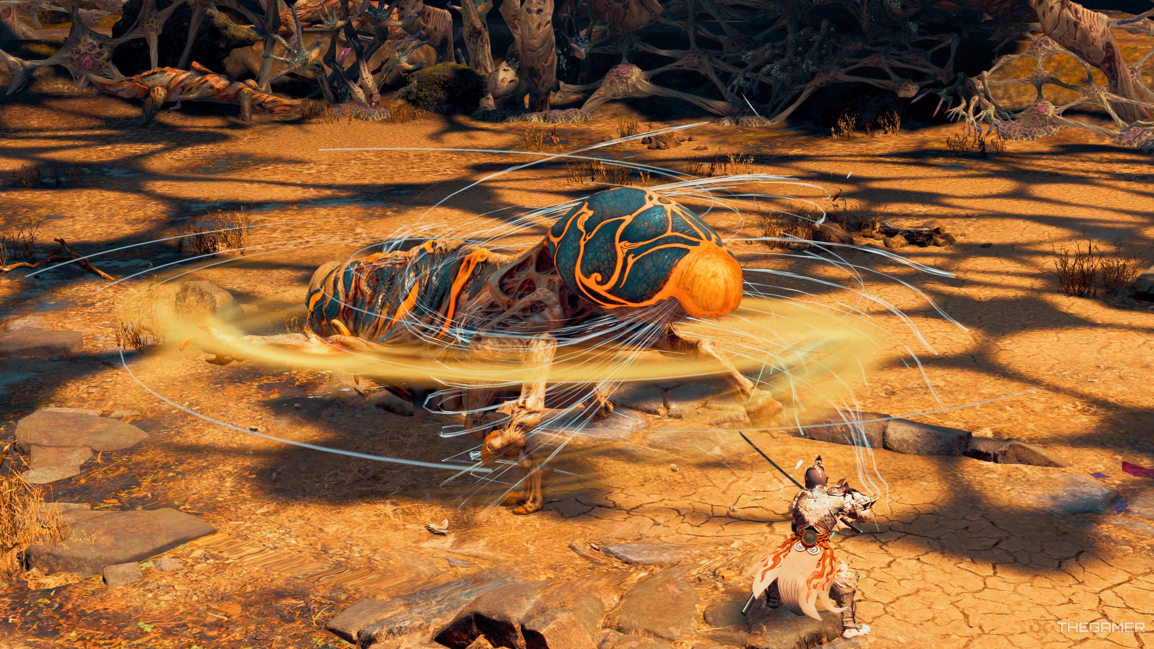 Батсу способен выполнять различные атаки. Вместо того, чтобы бросаться к вам в лоб, как многие другие, он выбирает вращательное движение по полному кругу. Будьте осторожны, если заметите, что он принимает низкую стойку – это ваше предупреждение о приближении этой атаки.
