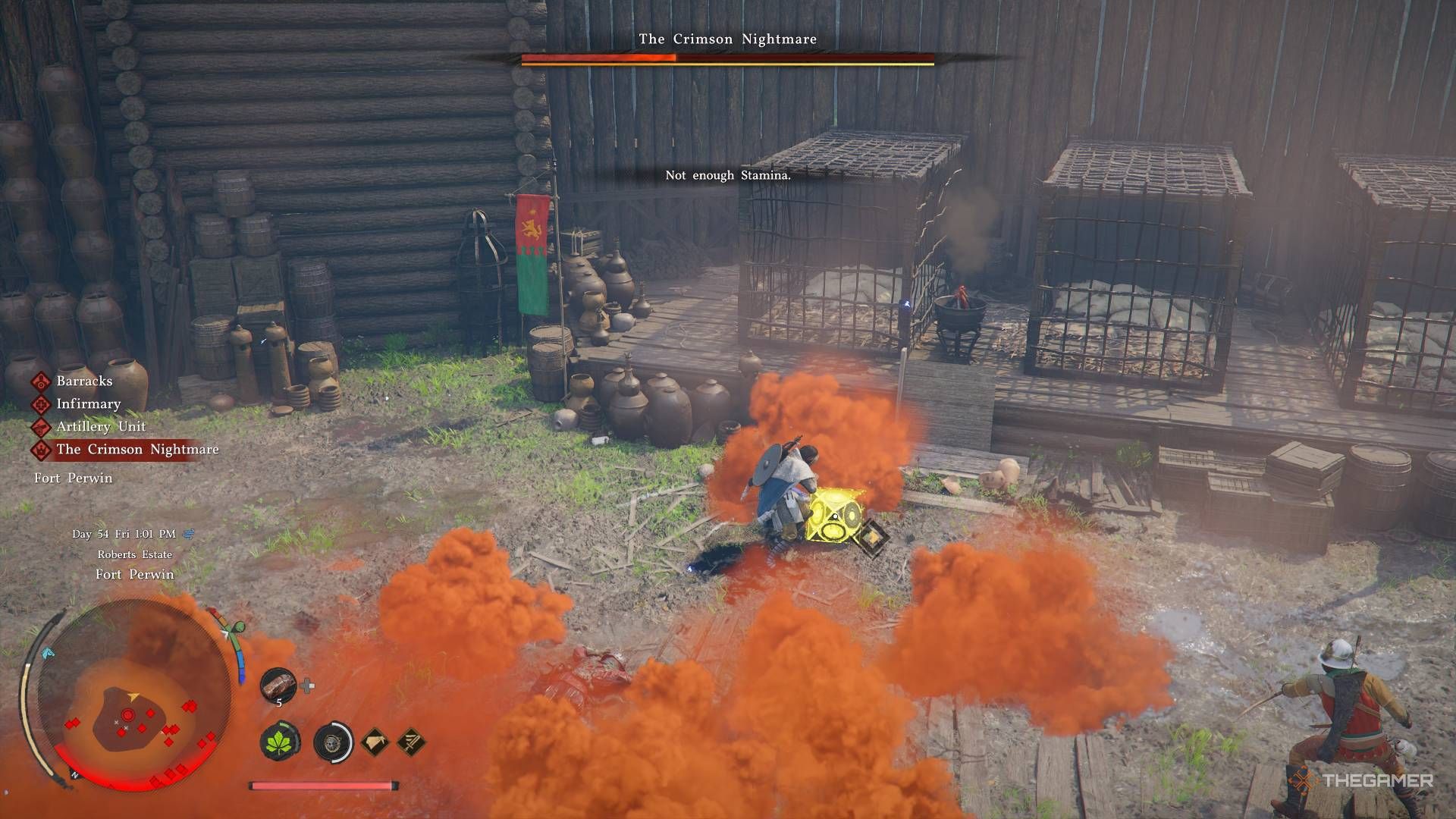 Прямо за пределами Fort Perwin есть небольшая стоянка, где вы можете использовать Grindstone, чтобы увеличить свой урон. Вы также можете сломать ближайшие ящики, чтобы найти бесплатные овощи и другие ингредиенты для приготовления пищи.