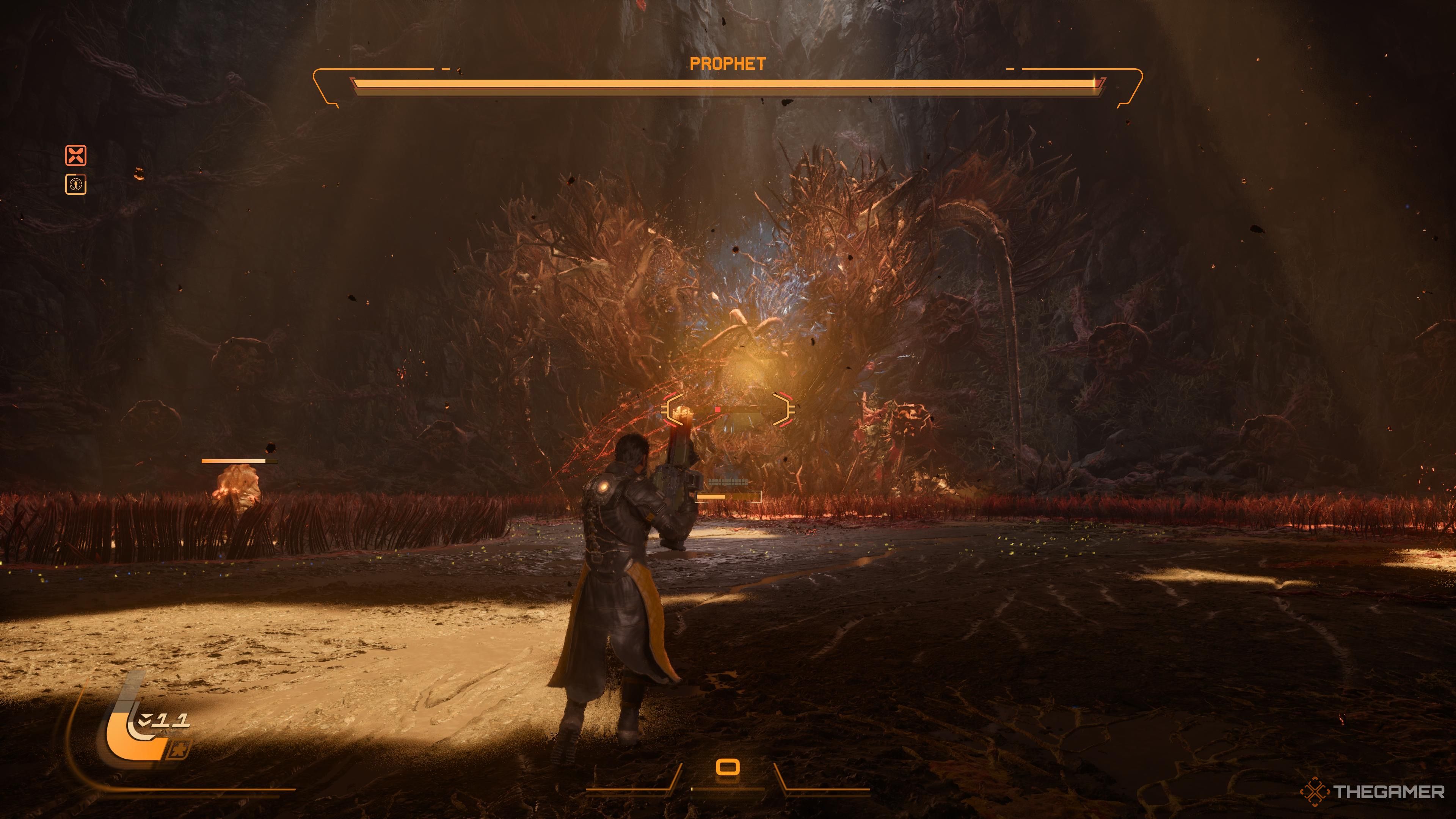 Окей, так Пророк — первый настоящий босс, с которым вы сражаетесь на Каркосе, и позвольте мне сказать вам, он сложный! Он намного сложнее всего, с чем я столкнулся к тому моменту. Сражение — это не просто одна большая атака — оно разделено на три фазы, и, честно говоря, каждая фаза становится прогрессивно сложнее предыдущей. Вам действительно нужно быть готовым!