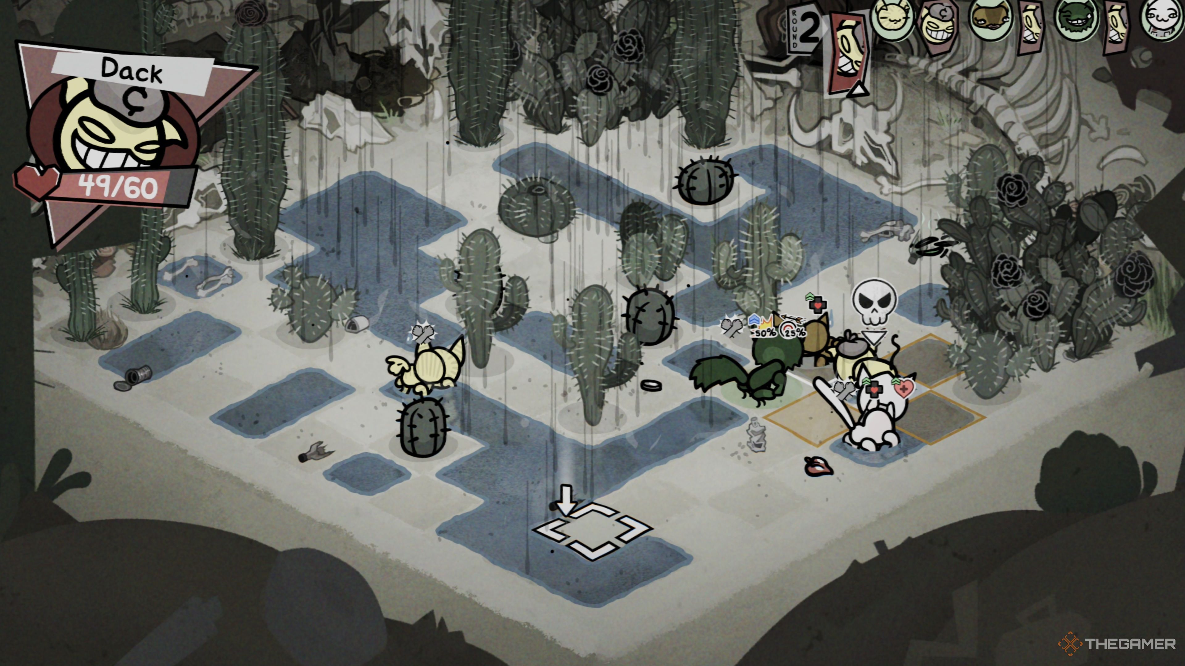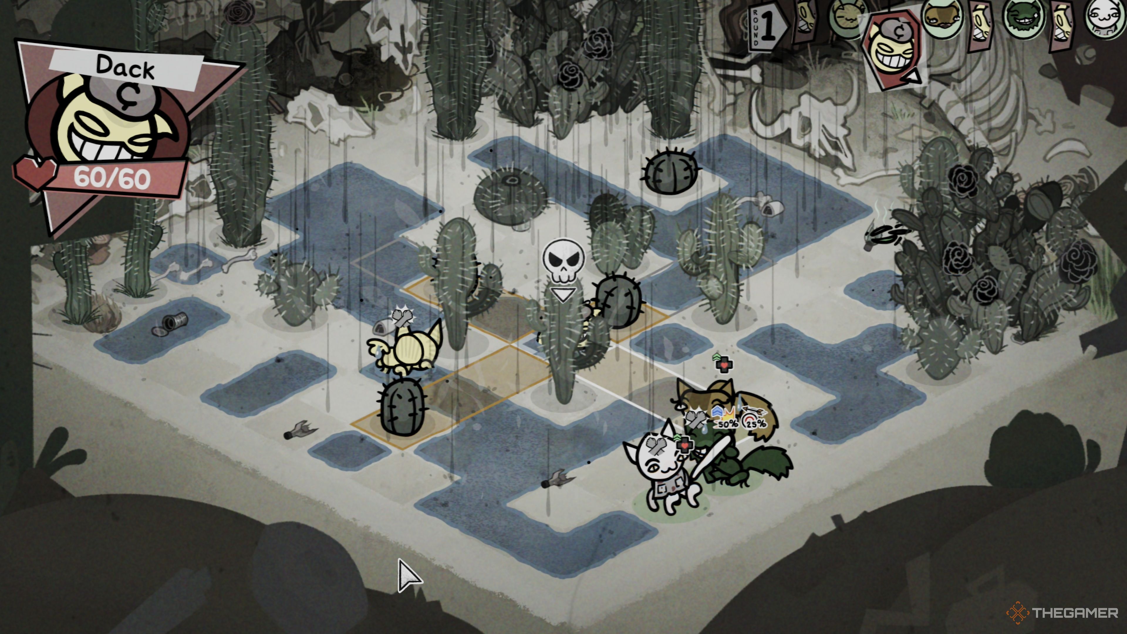 Атака Дака наносит урон и также заставляет вас уронить Монету на землю. Мы поговорим об этих Монетах позже, но важно постараться подобрать их до того, как это сделает Дак. Также, если ваш Танк может поменяться местами с другим юнитом, чтобы защитить его, используйте эту способность часто во время этого сражения!