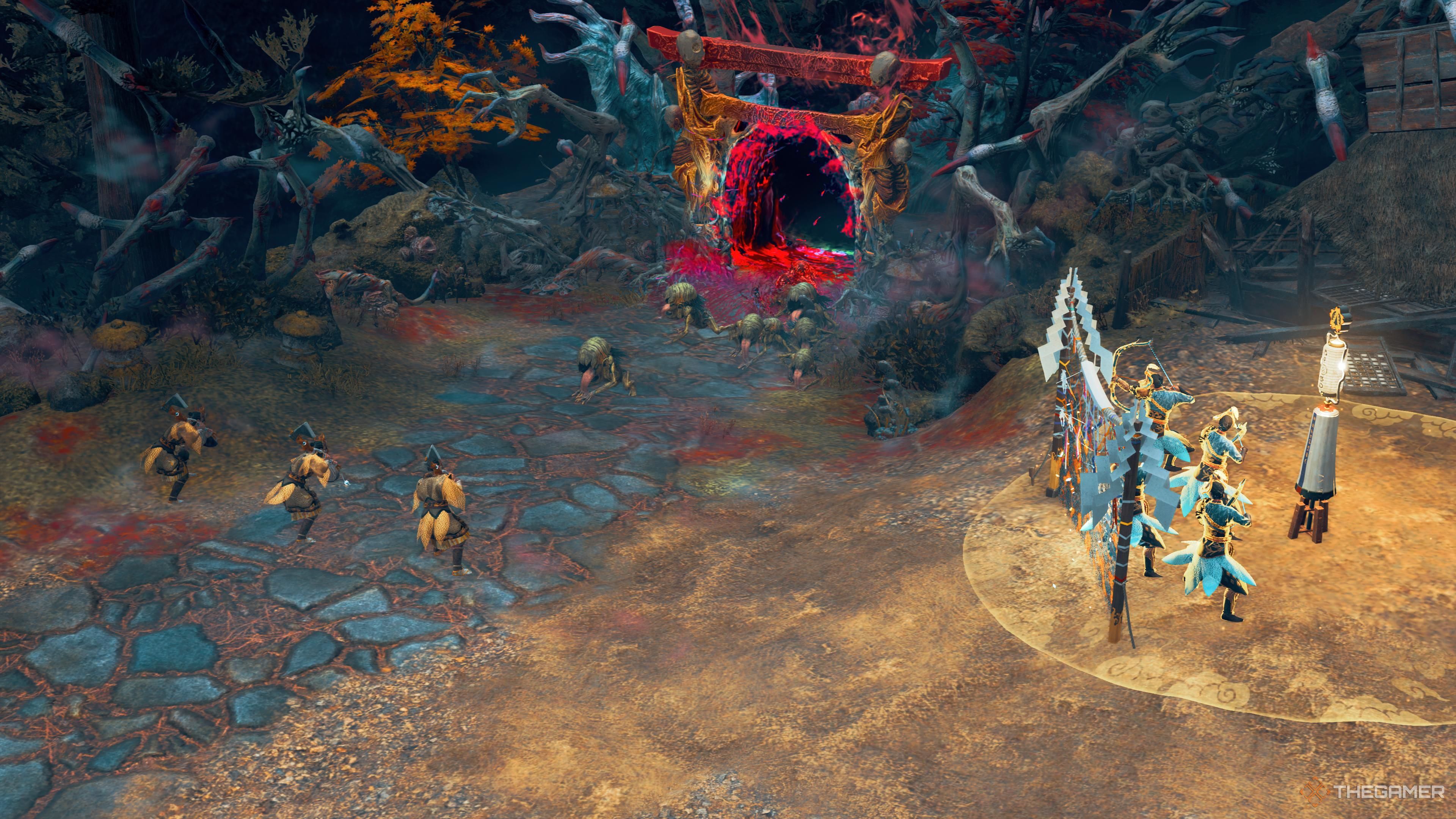 Как геймер, я могу вам сказать, что рядом с воротами Тории Сита есть место, где вы можете установить некоторую защиту. Вашему плотнику потребуется починить барьер и поддерживающее кольцо для этой области. Чем больше ресурсов вы вкладываете в своих лучников, тем сильнее становится эта позиция — для них это отличная точка обзора, чтобы уничтожать врагов издалека.