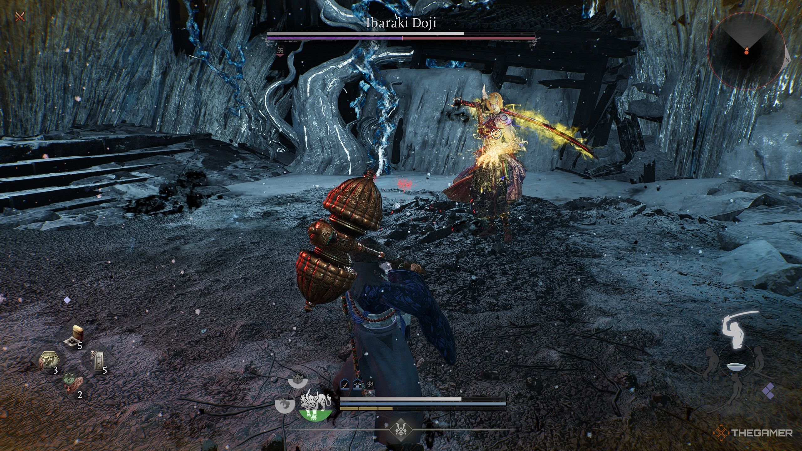 Во время сражения с Ибараки Додзи сосредоточьтесь на атаке в короткие моменты, когда она уязвима после своих атак. Хотя она наносит сильный урон, вы можете значительно повысить свои шансы на победу, идеально блокируя и уклоняясь от атак её электрической рукой.