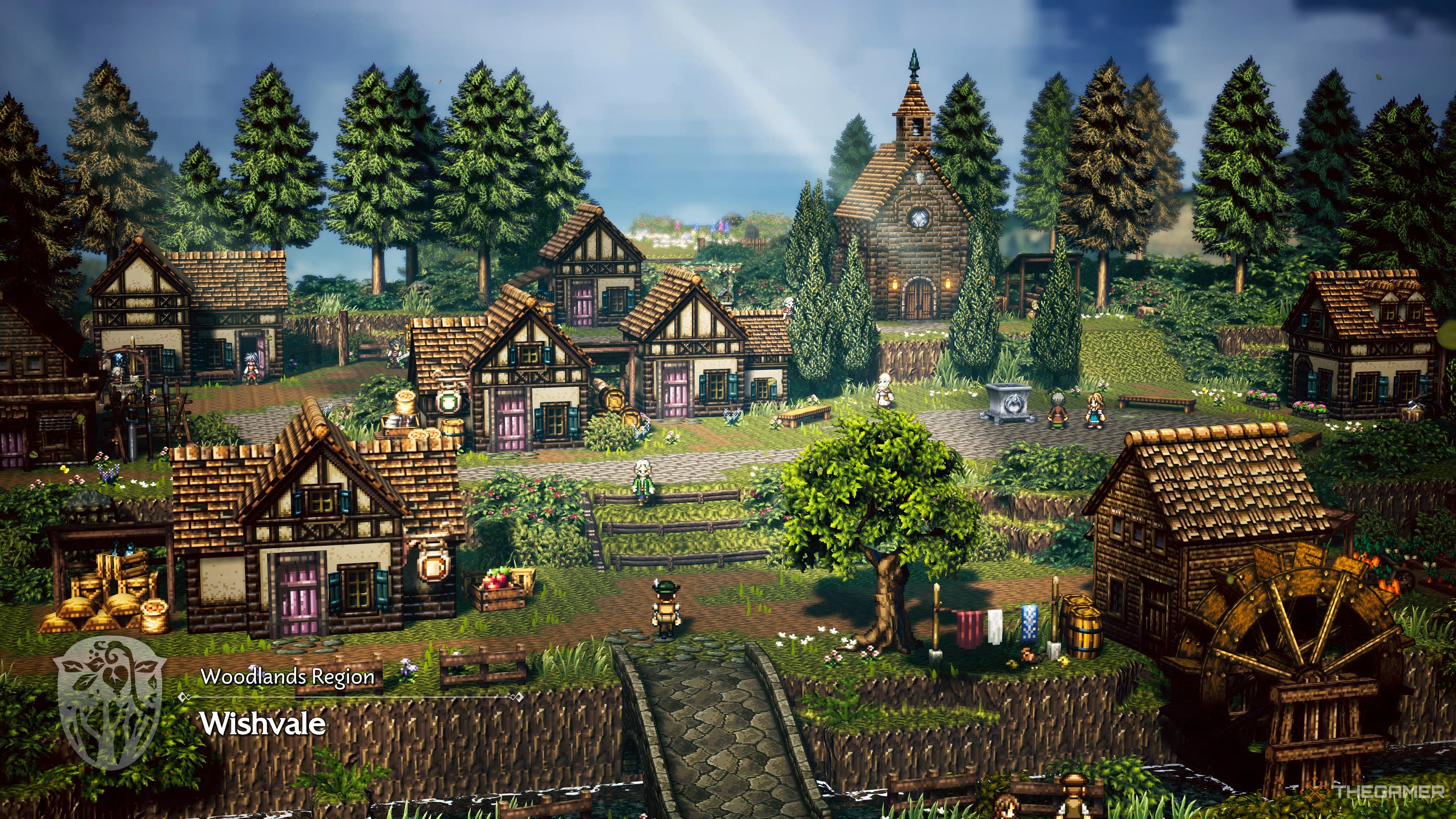 Начало Octopath Traveler 0 ощущается как начало классической JRPG – вас сразу же увлекает захватывающая история и приключение. После создания персонажа и просмотра начальных сцен вы окажетесь в тихом городке Вишвейл, месте, которое вы называете домом, и где все знают ваше имя.