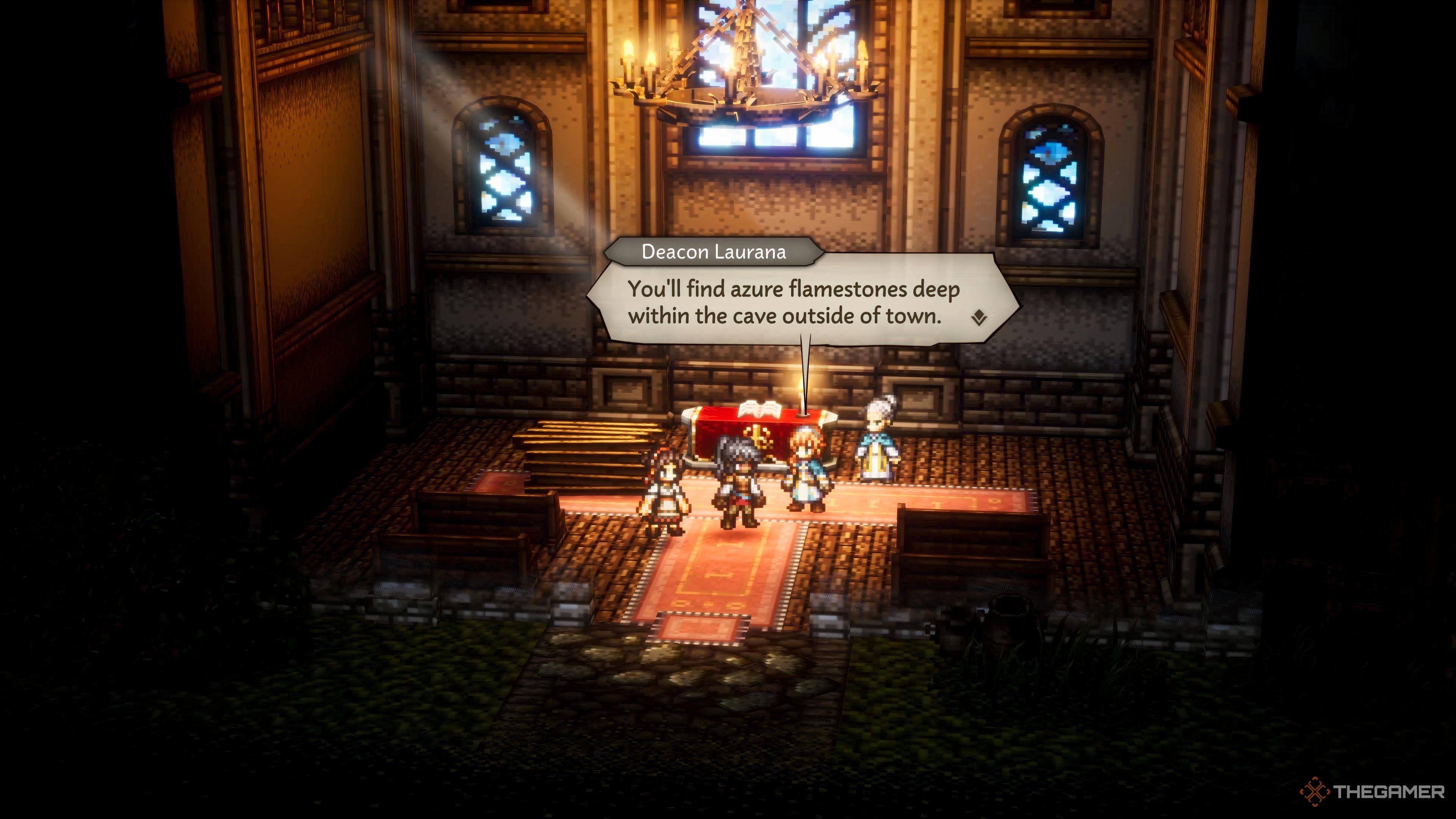 Вы объединитесь со Стией, и она попросит вас отправиться в церковь. По прибытии поговорите с Лаураной. Затем вам нужно будет найти голубой огненный камень, спрятанный в Лазурных пещерах, сразу за городом. Теперь, когда Стия присоединилась к вашей группе, пришло время покинуть город и начать свое путешествие по Тропе Желаний.