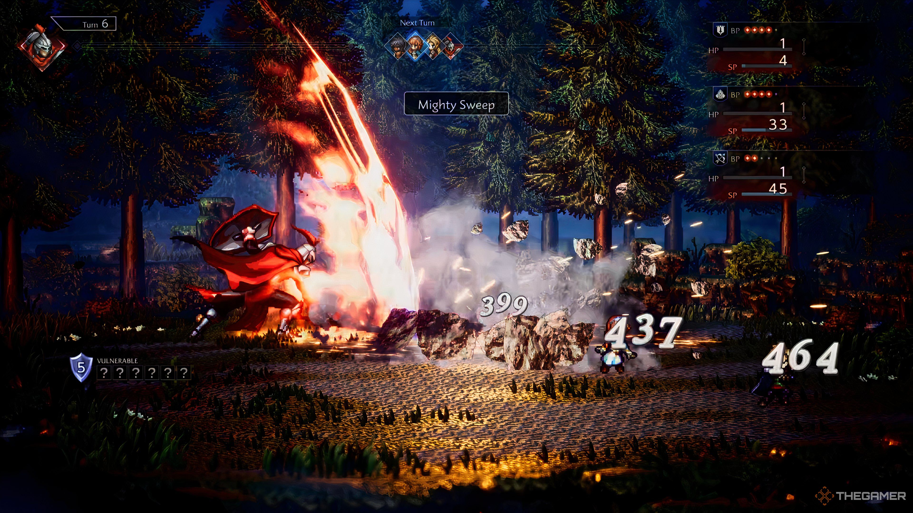 Используйте Повторяющийся выстрел Фенна, чтобы сломать два щита врага, а затем завершите уничтожение остальных мечом и усилением BP. Когда Изумрудный Страшный Волк готовится к атаке, убедитесь, что вы сломаете его до того, как он получит возможность ударить вас на следующем ходу.
