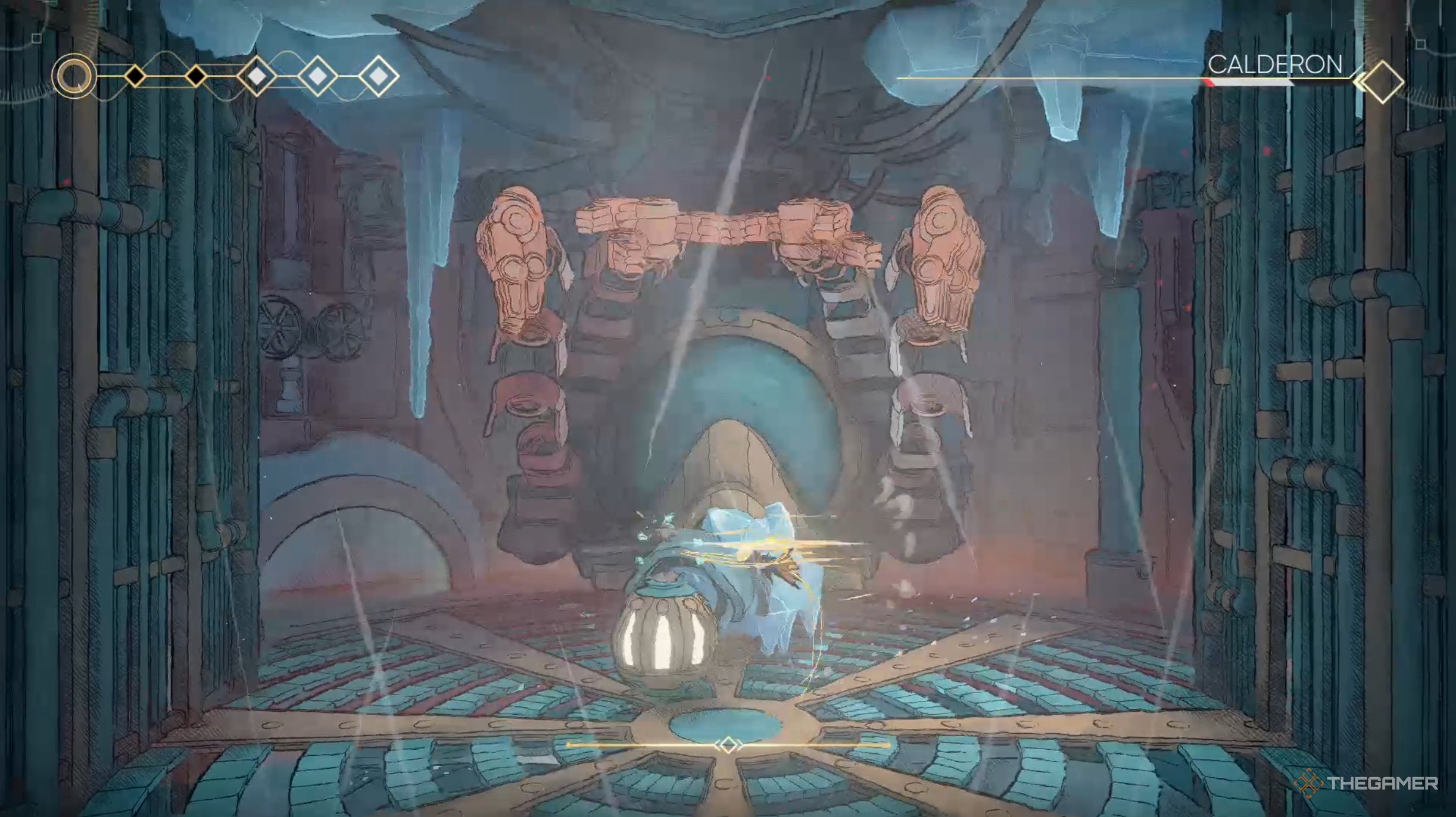 Бой с боссом Кальдерон проверяет, насколько хорошо вы можете изучать паттерны атак и использовать уклонение. Вам нужно будет внимательно следить за его огромными руками и сосредоточиться на уклонении в правильное время, вместо того, чтобы постоянно пытаться атаковать.
