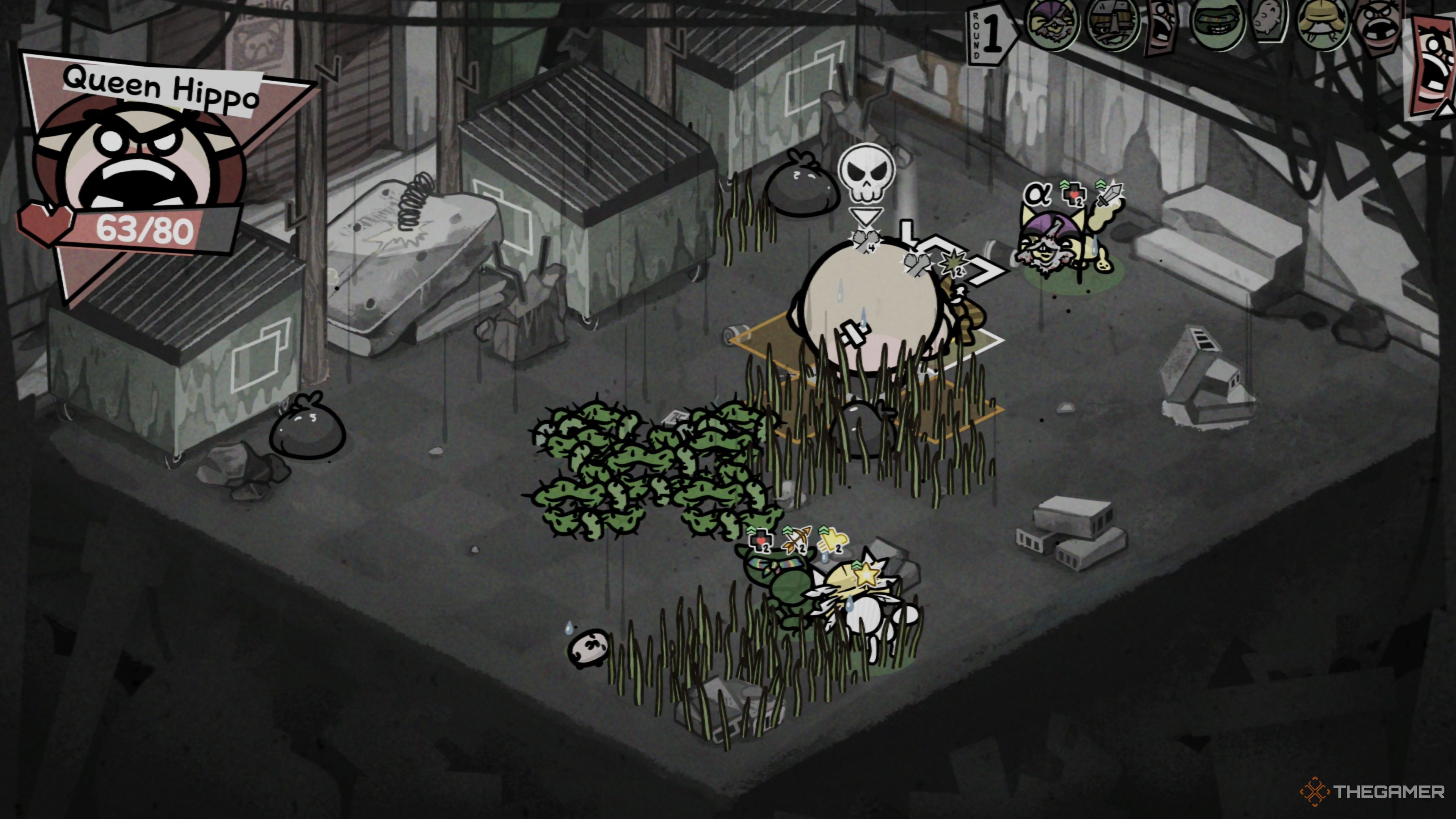 Королева Бегемот — сложный босс, с которым вы можете столкнуться в начале локации Alley в Mewgenics. Она сильна, потому что обладает большим количеством здоровья, может связывать атаки вместе и наносит очень сильный урон. Это делает её особенно сложной, если вы новичок в игре или у вас нет сильной команды.