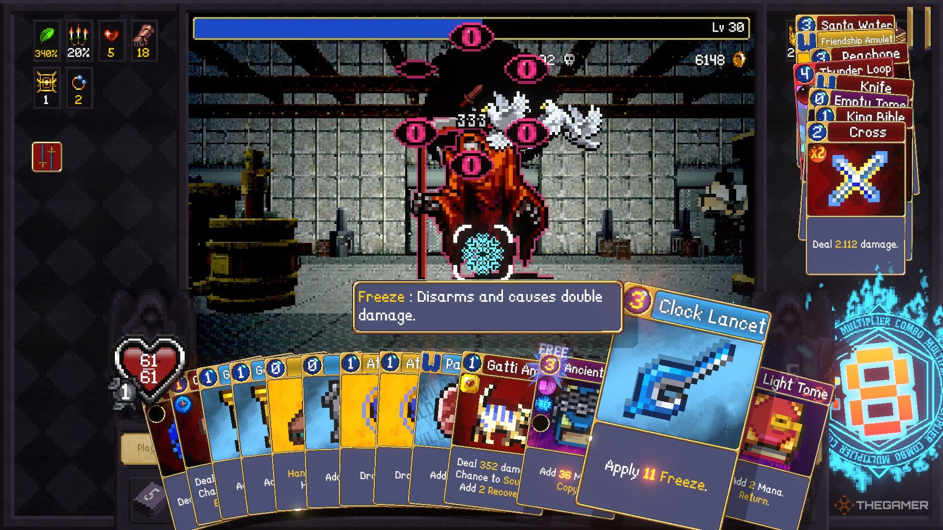 Вот базовый план: максимизируйте свой урон, используйте свои Wild Cards, чтобы поддерживать комбо, используйте Tomes для восстановления Mana при необходимости, и самое главное, внимательно следите за глазами Red Death. Тщательно планируйте своё комбо в зависимости от того, сколько глаз осталось, чтобы не потерять его, когда вам нужно заморозить врага.