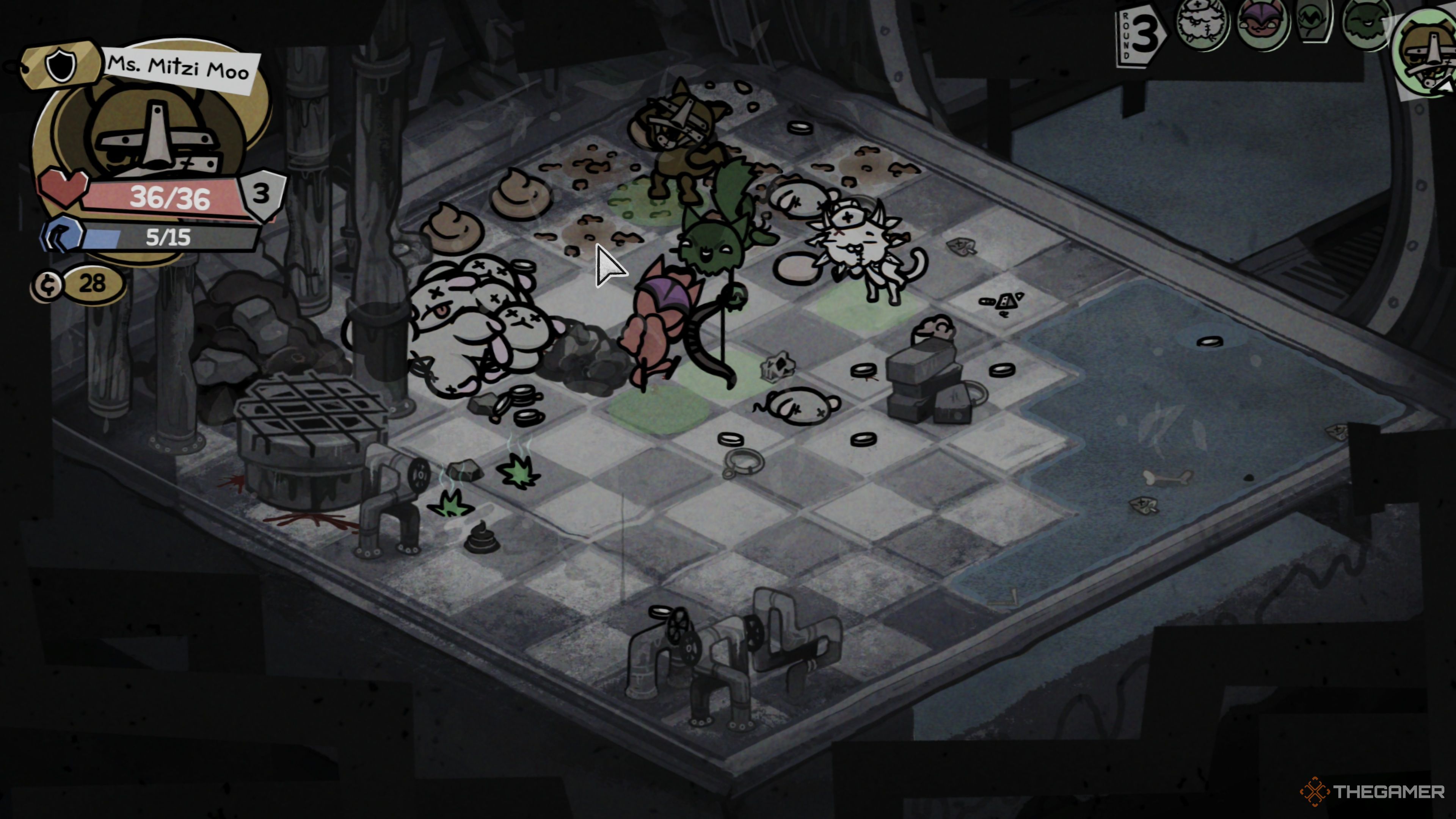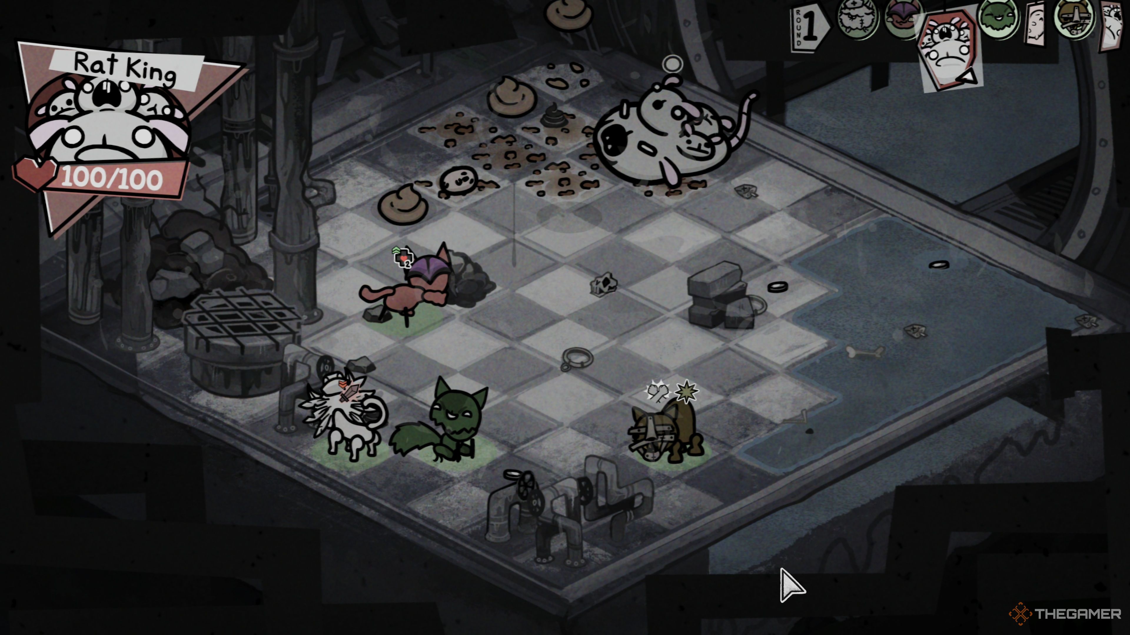 Окей, так что Канализация в Mewgenics? Это крутая область. После Аллеи, которая довольно проста, Канализация бросает вам гораздо больше разнообразия в плане врагов. У них есть действительно интересные способности и трюки, которые сохраняют свежесть. Это не самая сложная часть игры, но вам определенно нужно начать более тщательно думать о своей команде и о том, как вы сражаетесь, если вы хотите победить. Это хороший шаг вперед по сложности, безусловно.