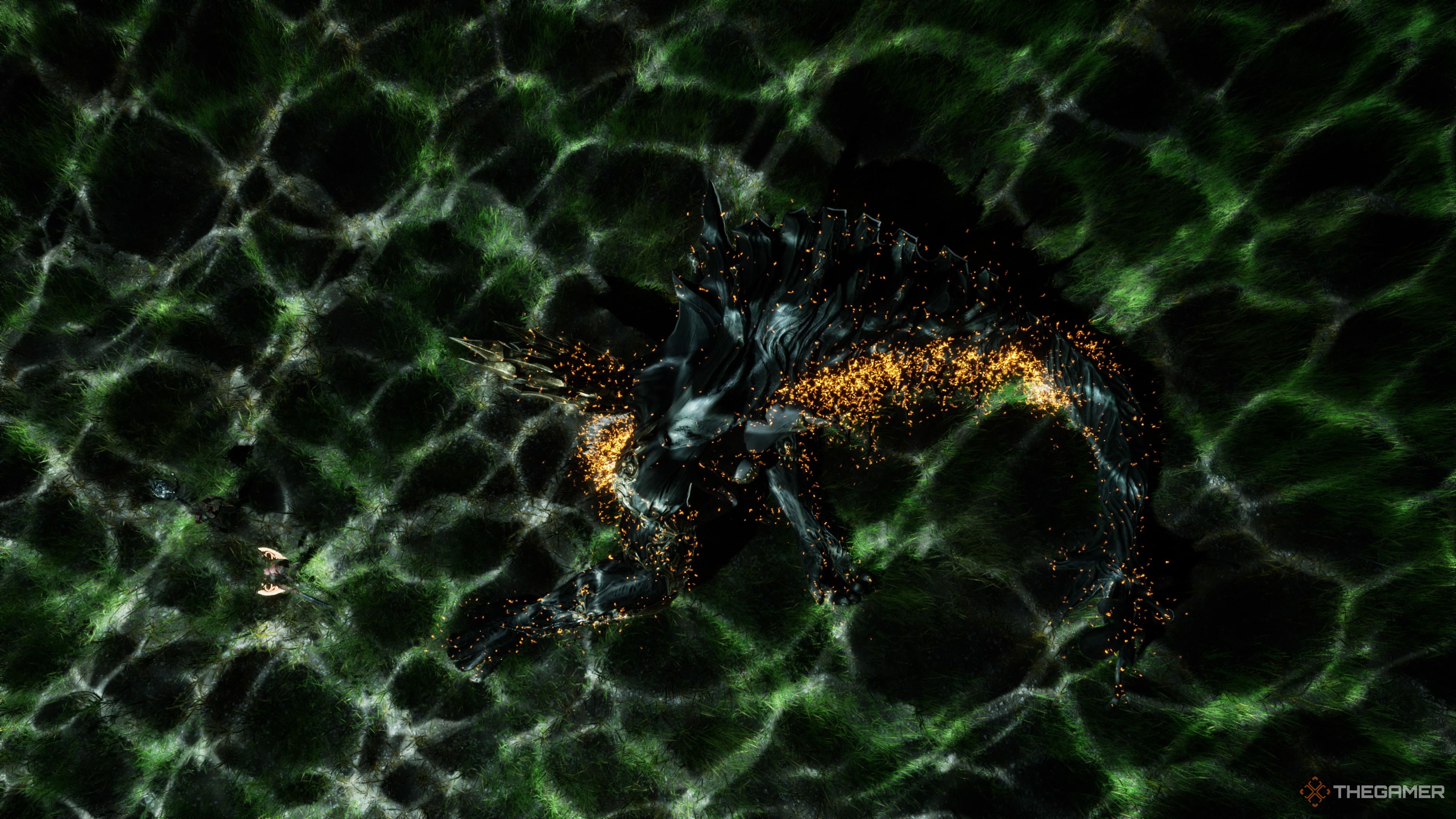 Не волнуйтесь слишком сильно – просто продолжайте атаковать босса и старайтесь бить ему по голове, когда это возможно. Вы не можете блокировать его атаки, поэтому сосредоточьтесь на уклонении. Если вы предпочитаете сражаться на расстоянии, мощные, полностью заряженные выстрелы стрелами в голову довольно эффективны.