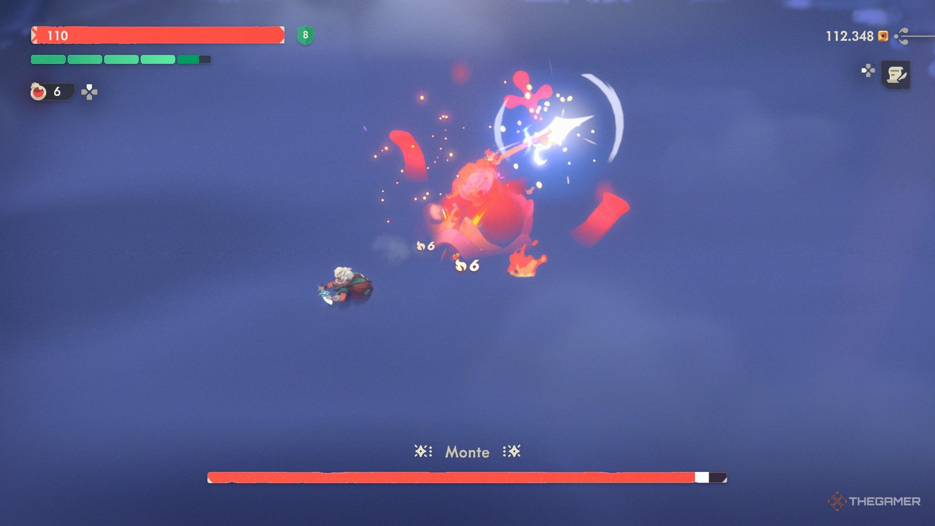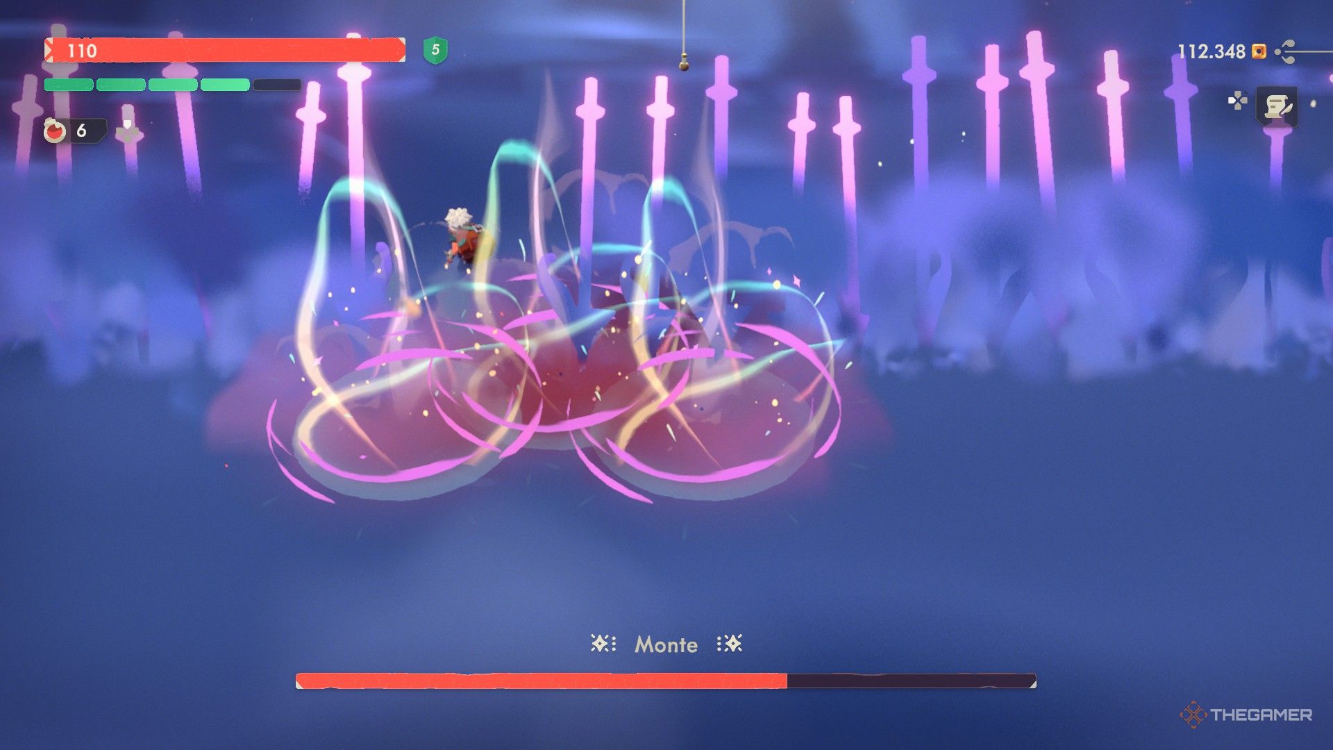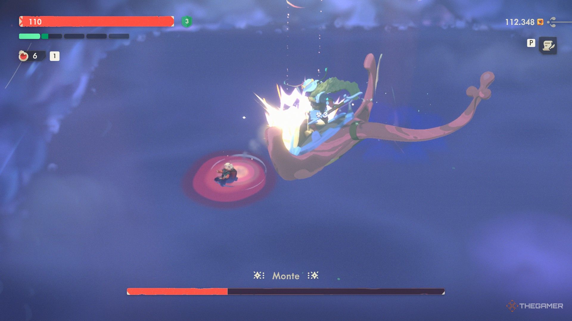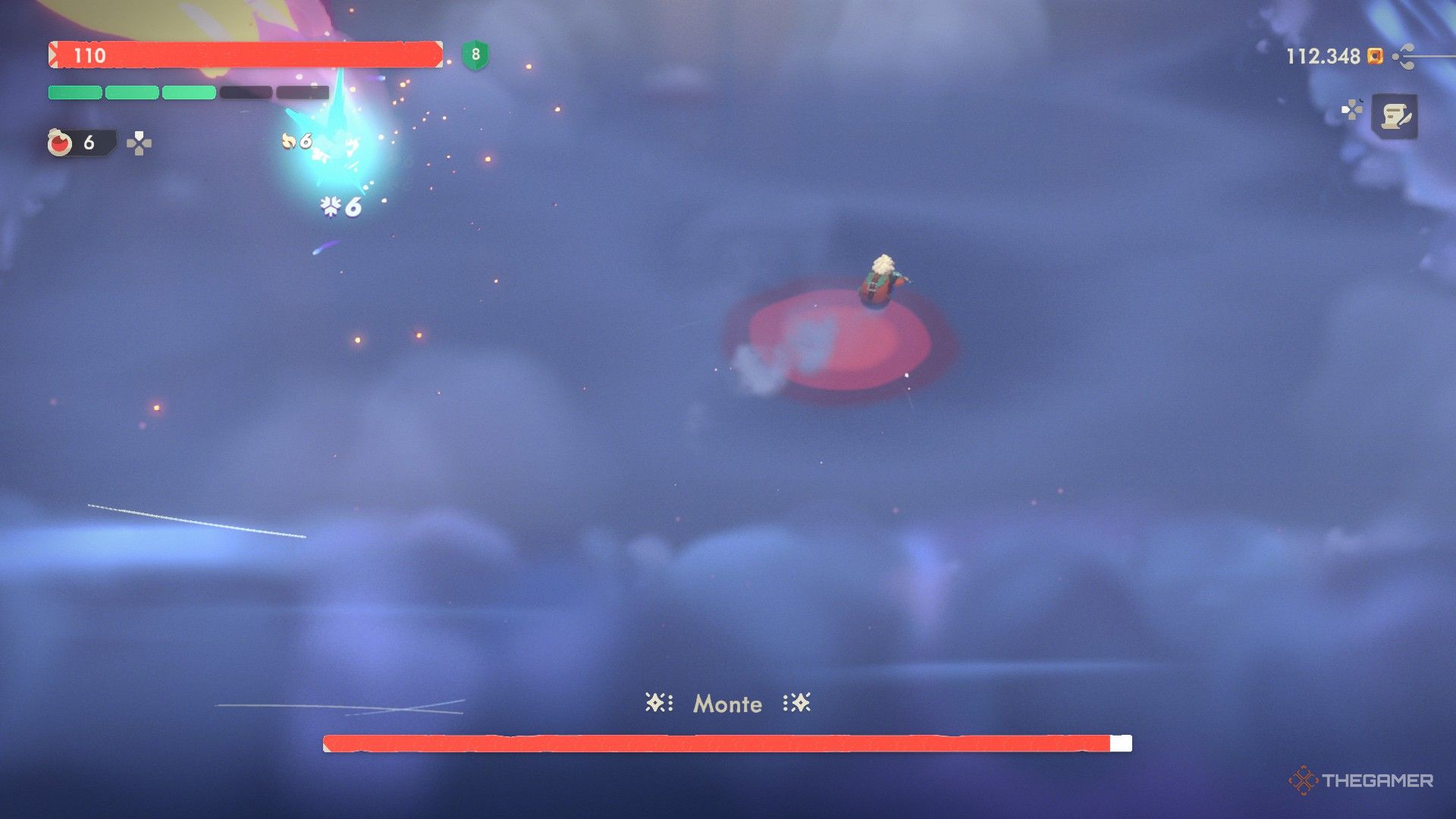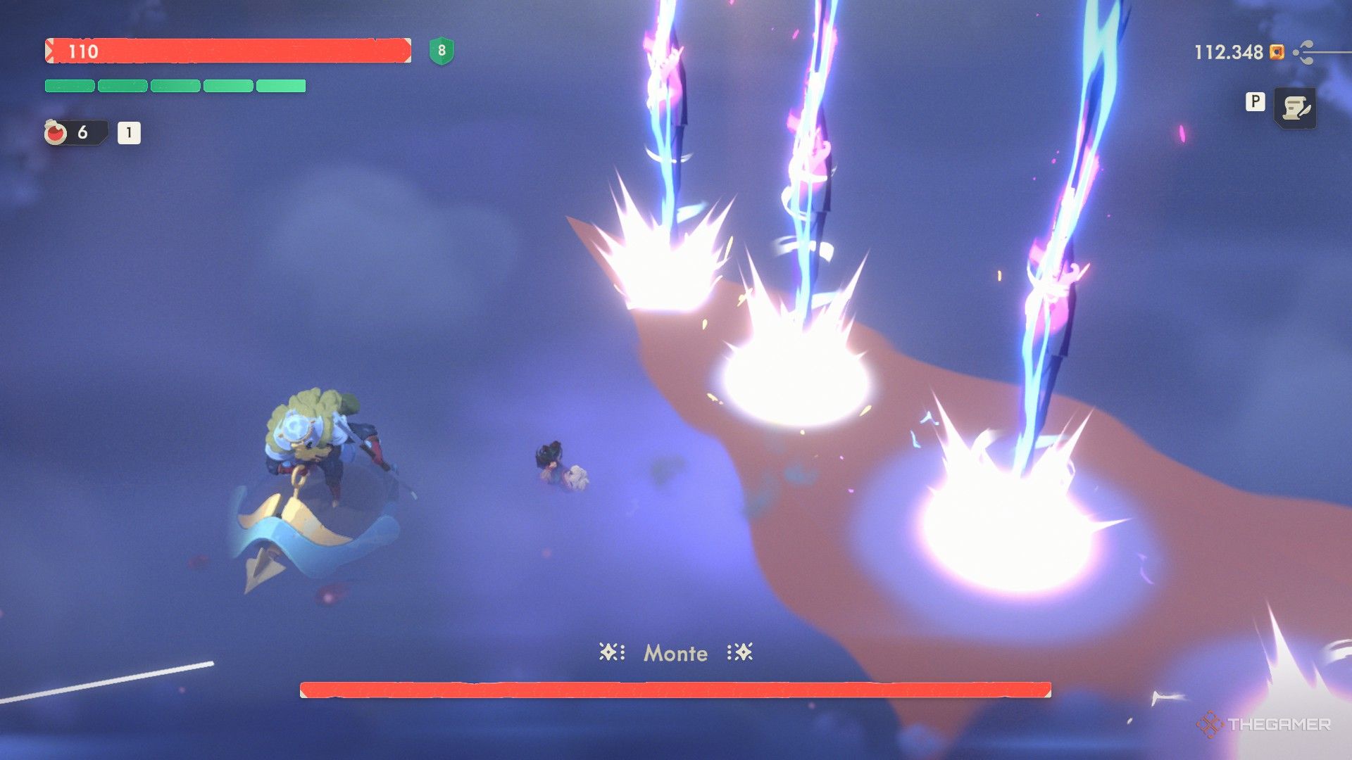 Во время финальной стадии битвы Монте будет использовать больше снарядов и взрывов в некоторых из своих атак. Например, вы увидите объекты, падающие с неба, как часть определенных атак — ищите круги на земле — и его цепные атаки будут оставлять за собой опасные следы после его перемещений.